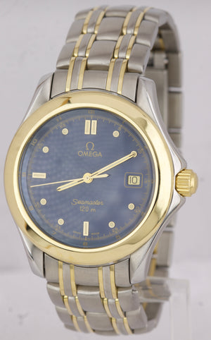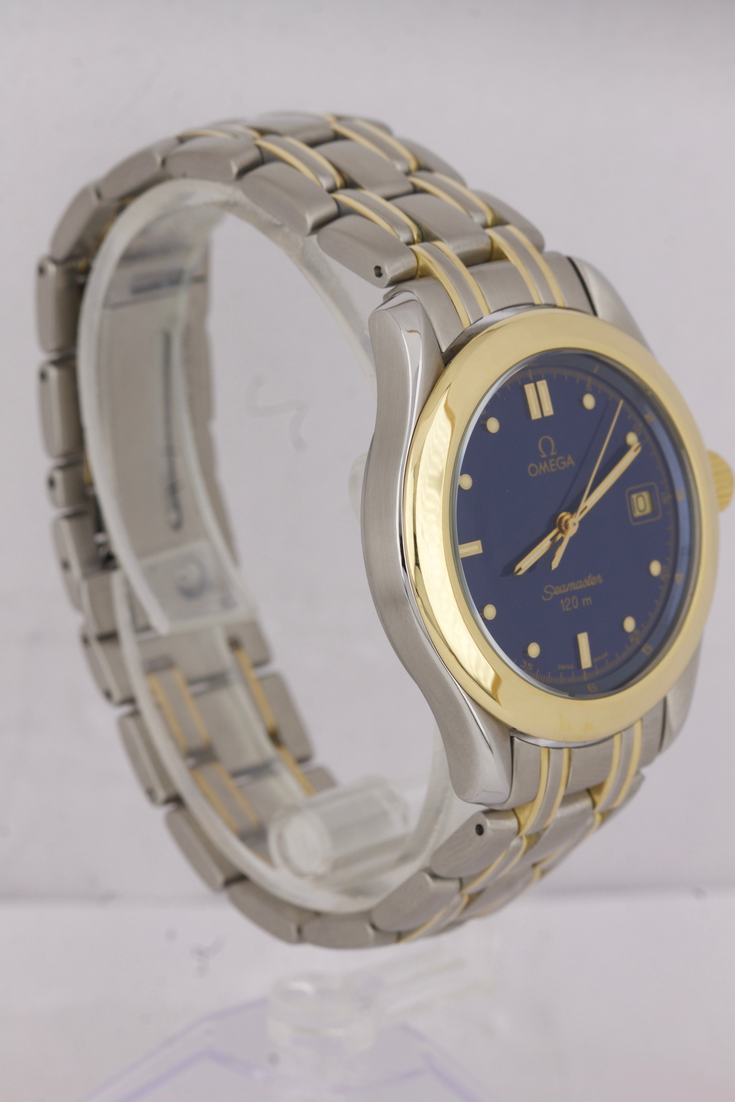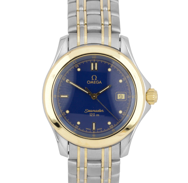 Omega Seamaster 120 Midsize 36mm Two-Tone Gold Blue Steel Quartz Watch 196.1501