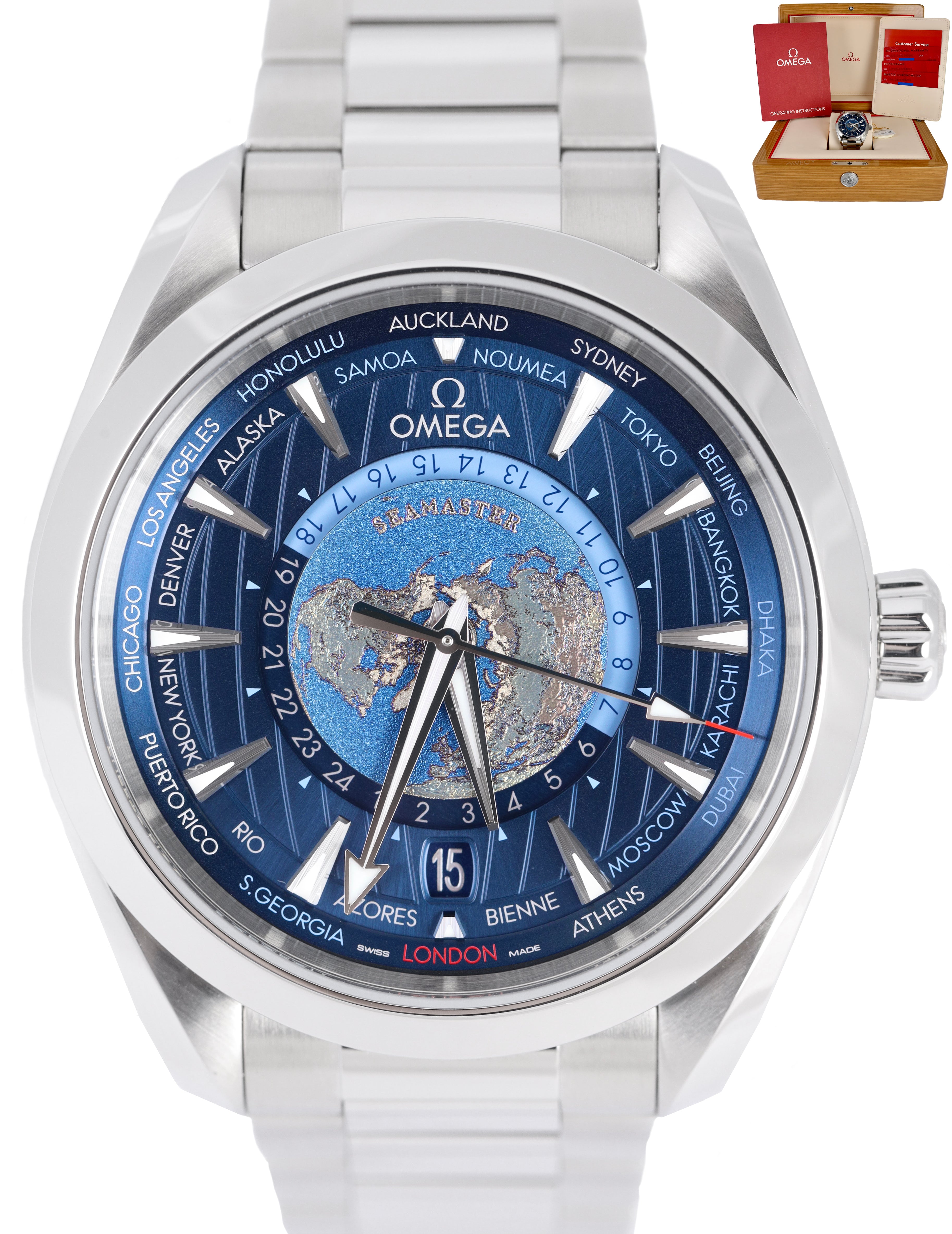 Omega Seamaster Worldtimer Aqua Terra 43mm Steel Blue 220.10.43.22.03.001 B+P