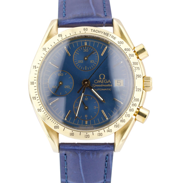 Omega Speedmaster Blue 18K Yellow Gold 39mm Chronograph Watch 175.0043 3611.10
