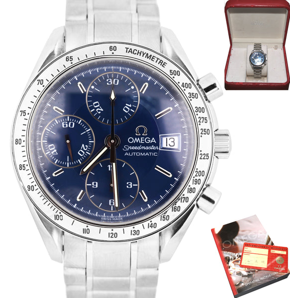 Omega Speedmaster Chronograph Blue Dial 39mm 3513.82.00 Stainless Date Watch