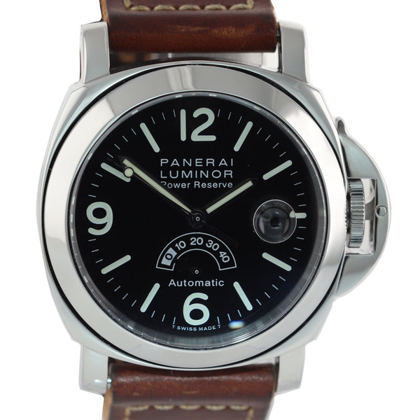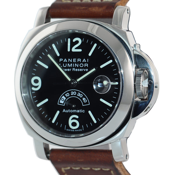 Panerai Luminor Power Reserve Tririum Automatic Date PAM 28 44mm Steel Watch