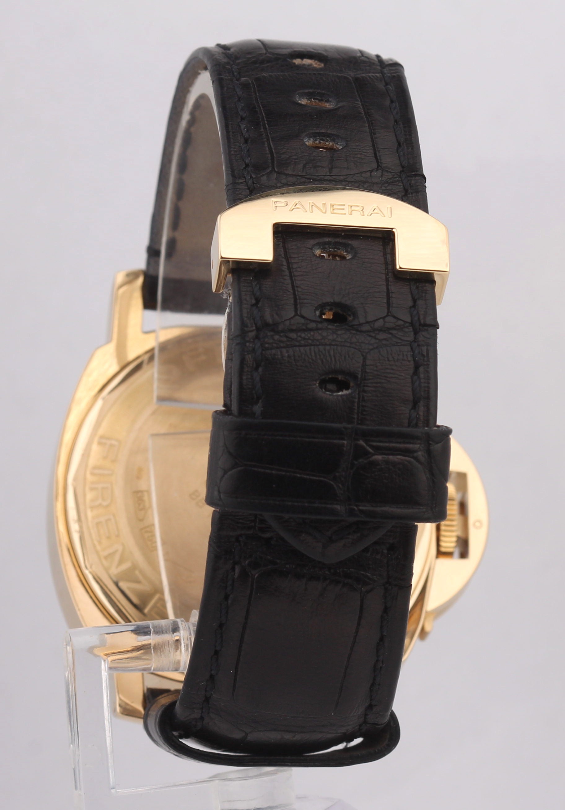 | Band | Original Panerai Adjustable Black Leather Strap with a 18K Yellow Gold Folding Deployment Clasp |