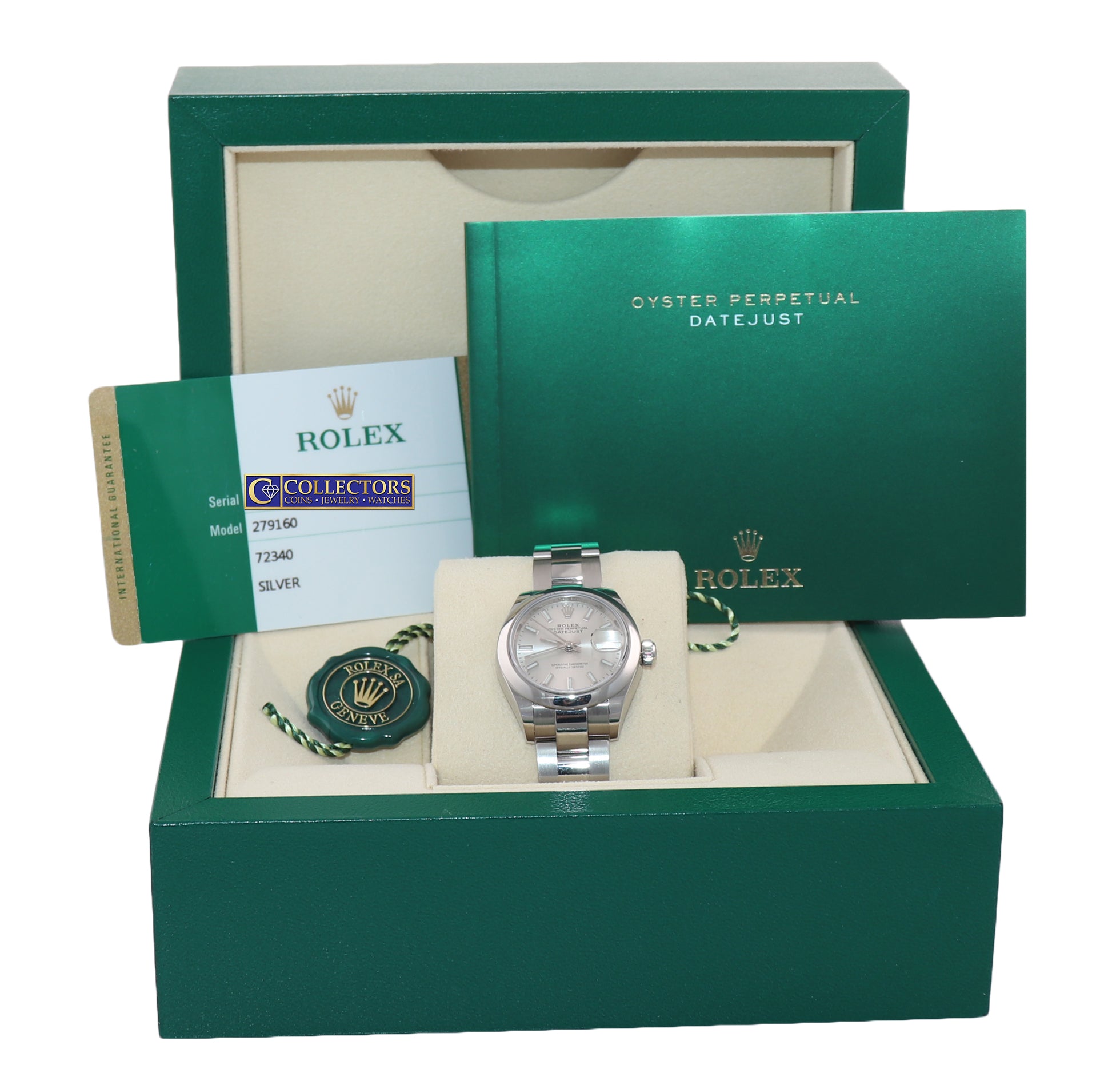PAPERS 2018 MINT Ladies Rolex DateJust 26mm Silver Stick 279160 Steel Watch Box