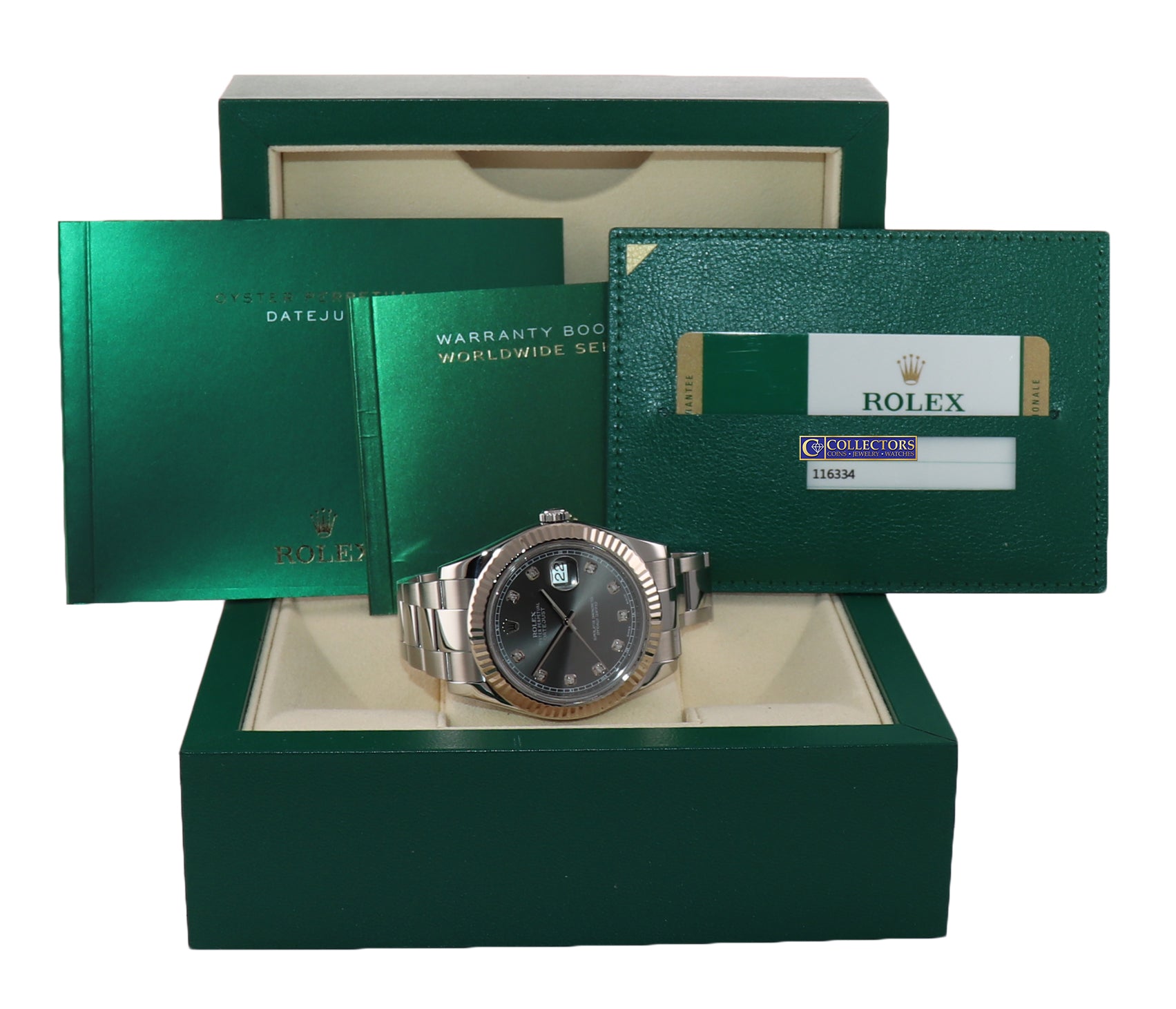 | Papers | Yes, this item will include the Original Rolex Warranty Papers and a Collectors Coins & Jewelry certificate of appraisal and authenticity as per buyer request. |