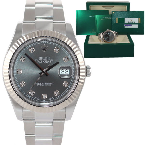 PAPERS 2015 Rolex Datejust 2 41MM Rhodium Diamond 116334 White Gold Watch