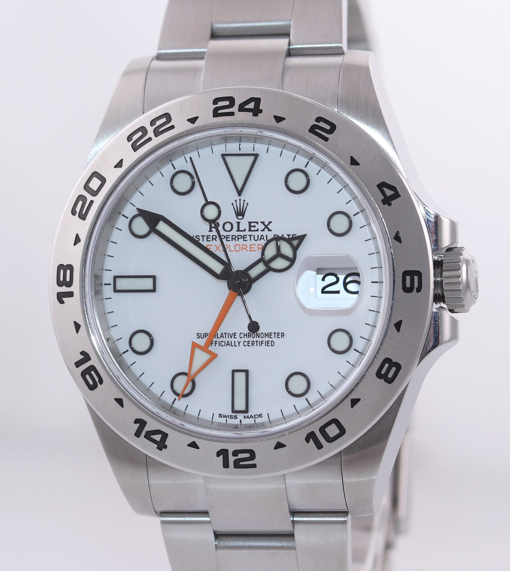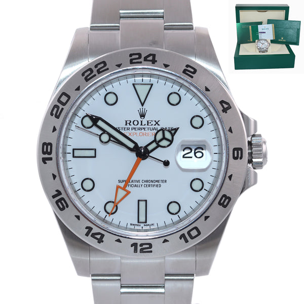PAPERS 2018 Rolex Explorer II 42mm 216570 Polar White Orange Steel Watch Box