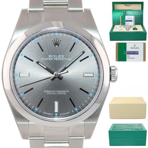 MINT 2018 PAPERS Rolex Oyster Perpetual 39mm Rhodium Steel Blue 114300 Watch & Box.