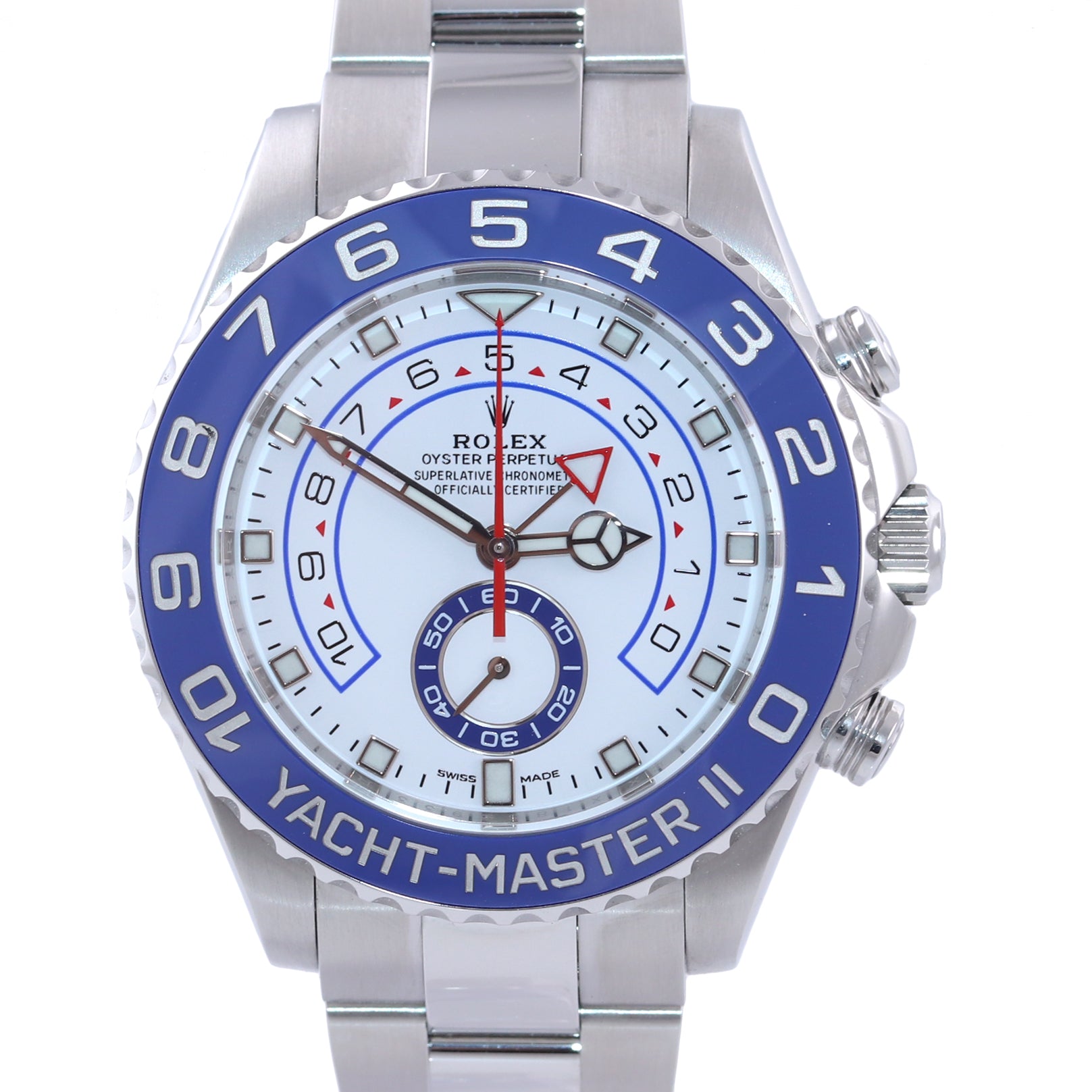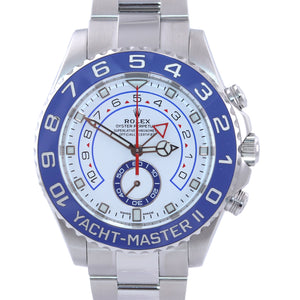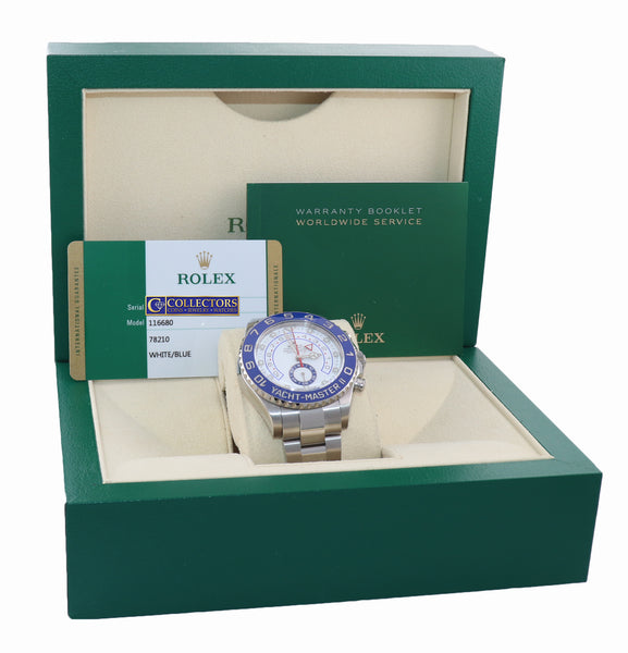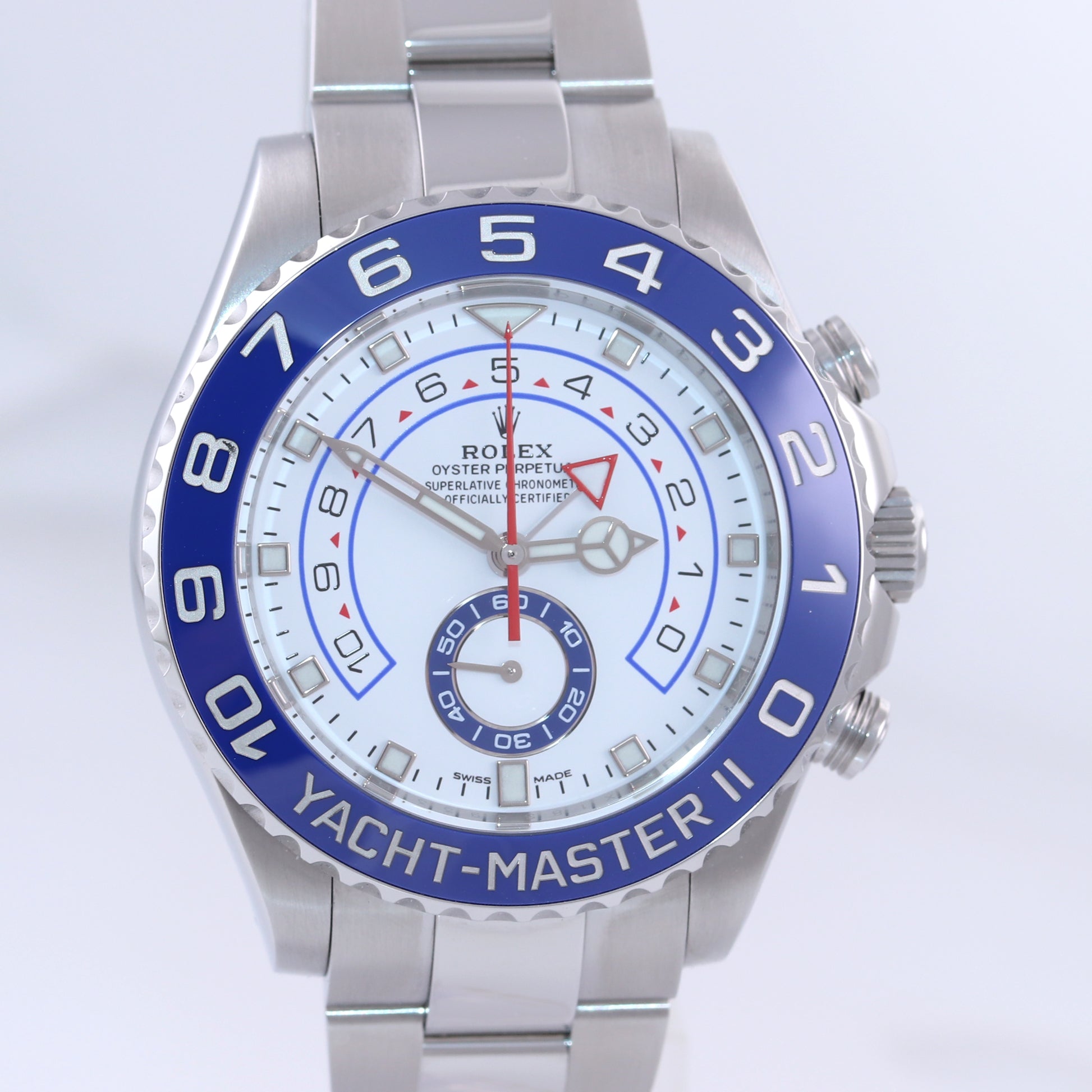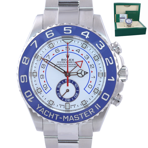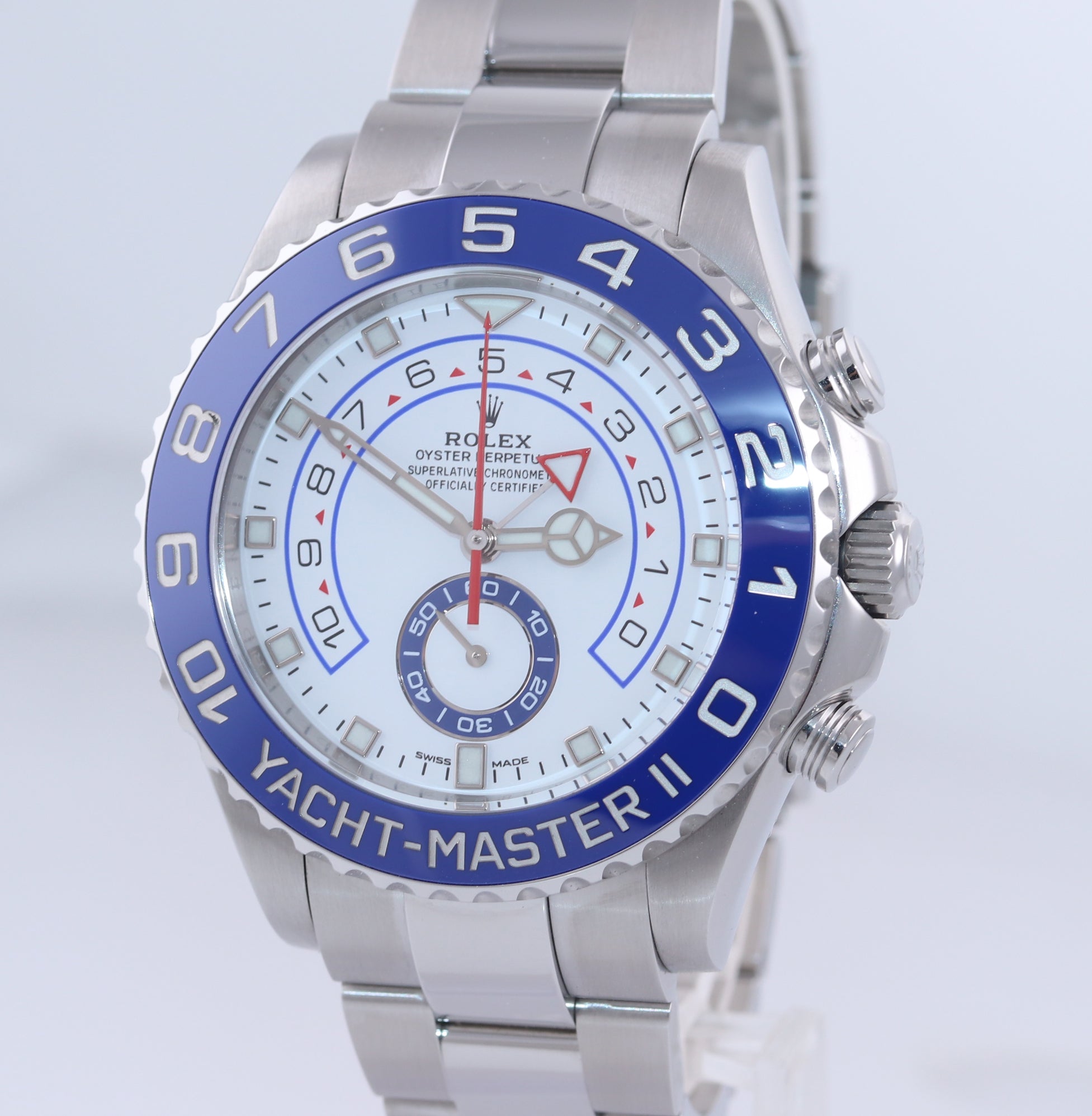 NEW 2019 Rolex Yacht-Master II 44mm MERCEDES HANDS White Blue Ceramic Bezel 116680 Watch