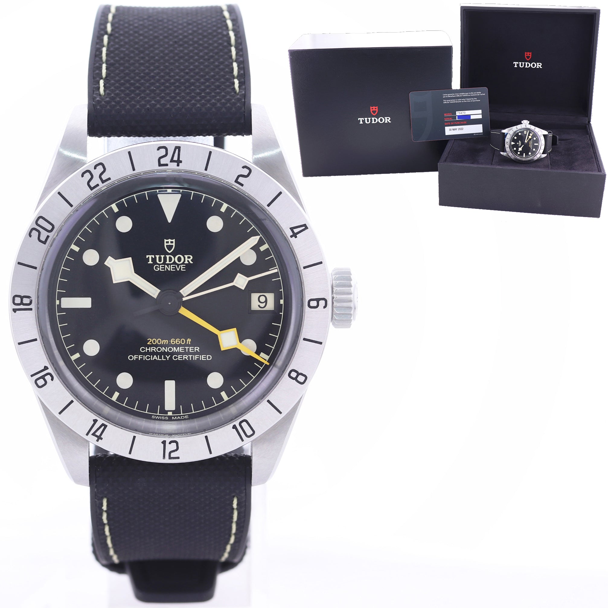 PAPERS 2022 Tudor Black Bay Pro 39mm Stainless Steel Black GMT Date Watch 79470