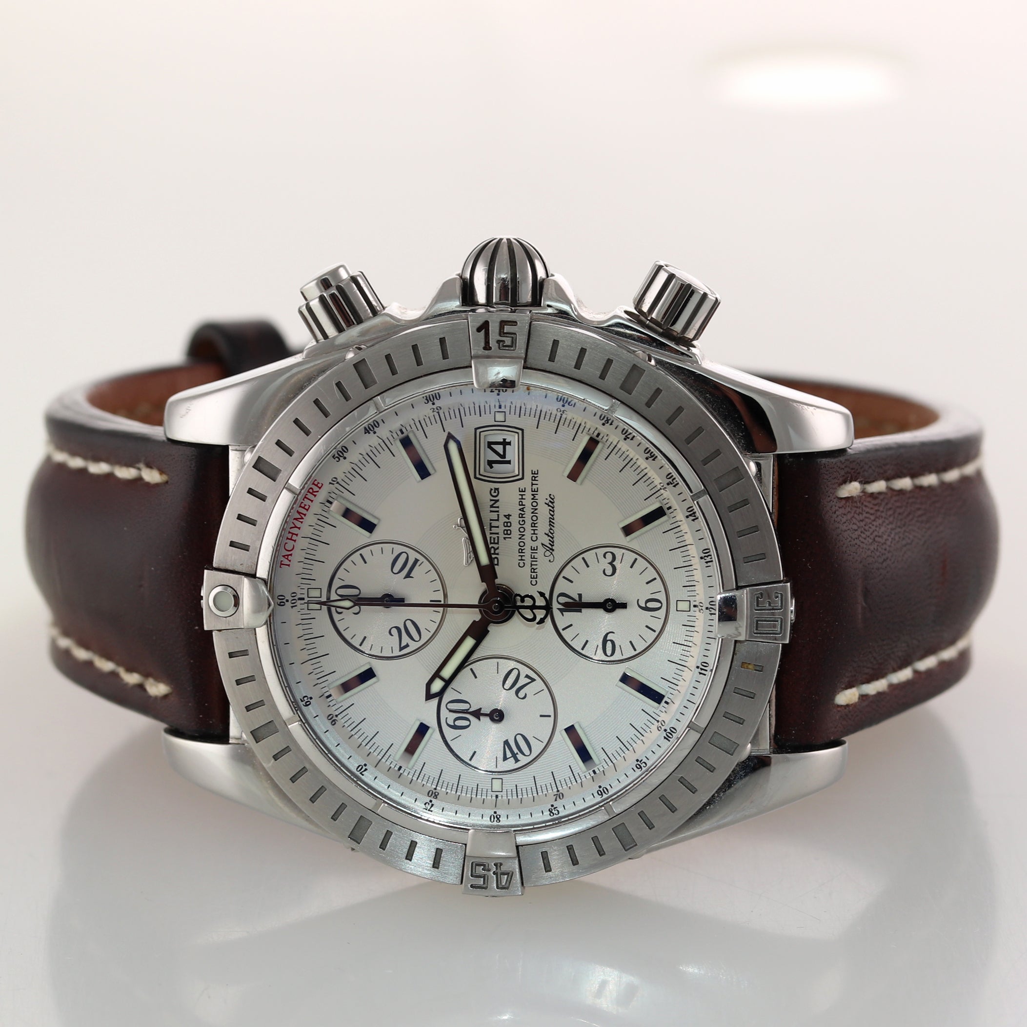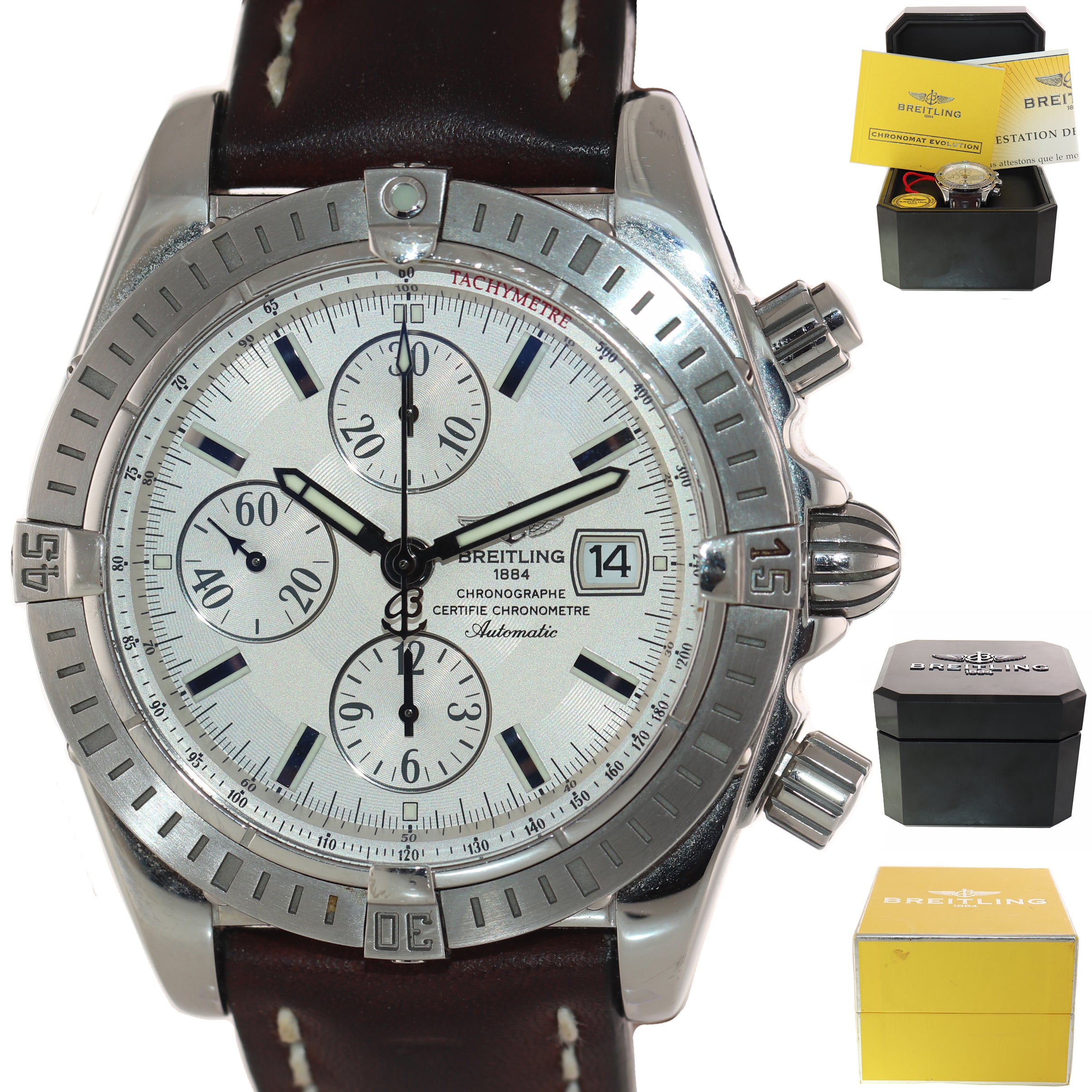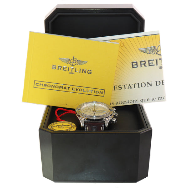 PAPERS Breitling Chronomat Evolution Chronograph Steel A13356 44mm Silver Watch