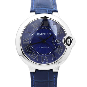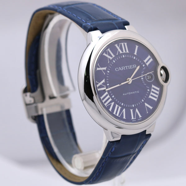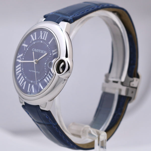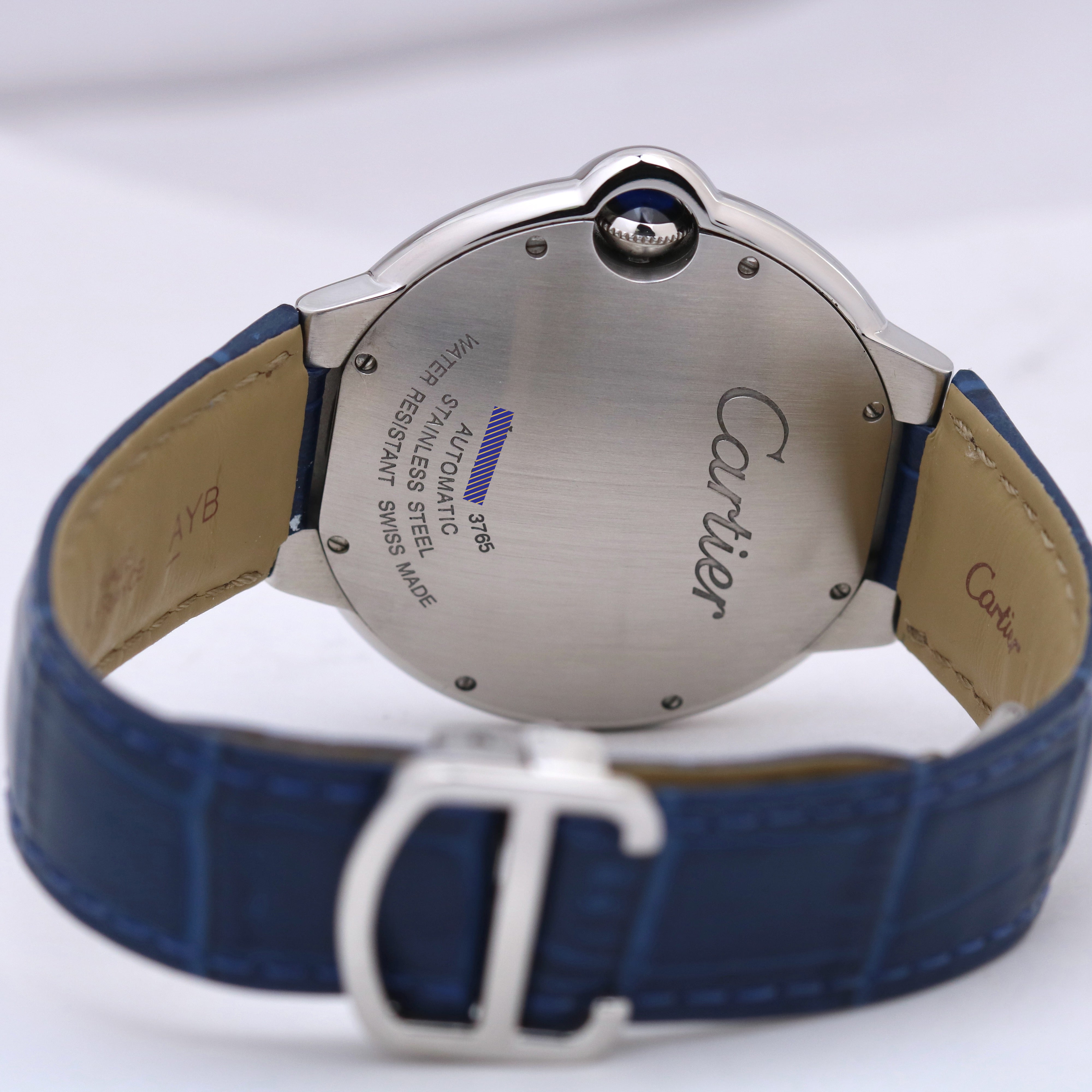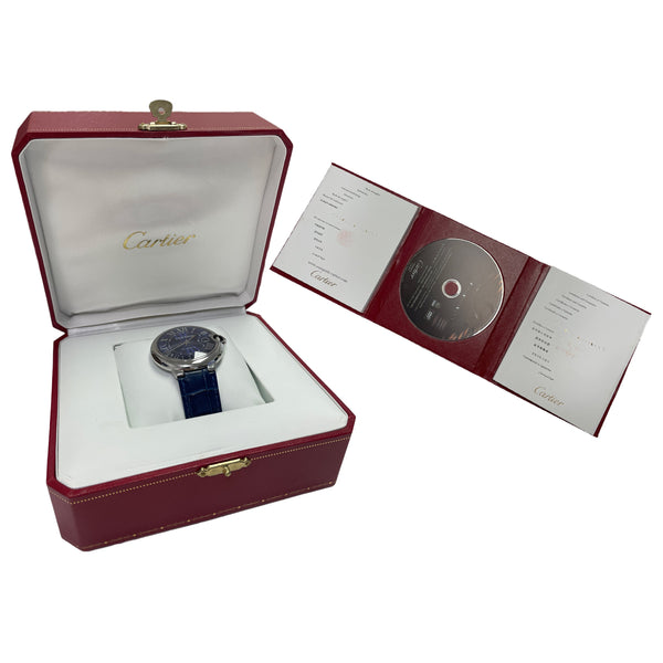 PAPERS Cartier Ballon Bleu Steel BLUE GUILLOCHE Leather 42mm 3765 WSBB0027 B+P