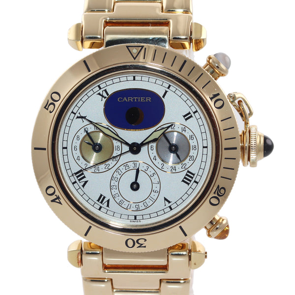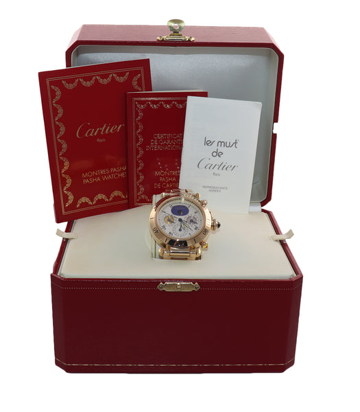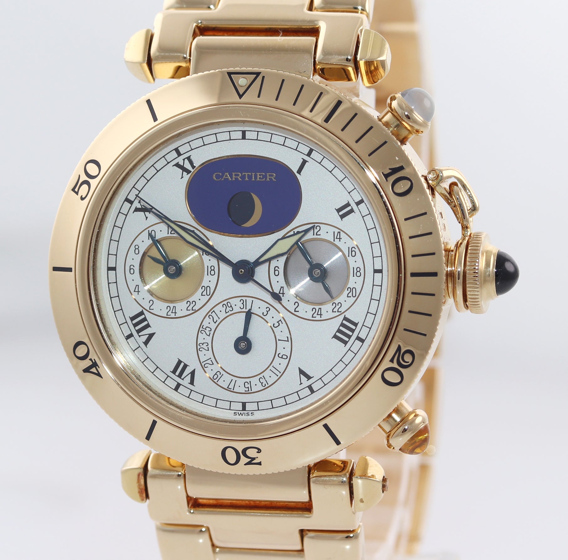 PAPERS Cartier Pasha 39mm 18K Yellow Gold Three Time Zone Automatic 0925 Watch