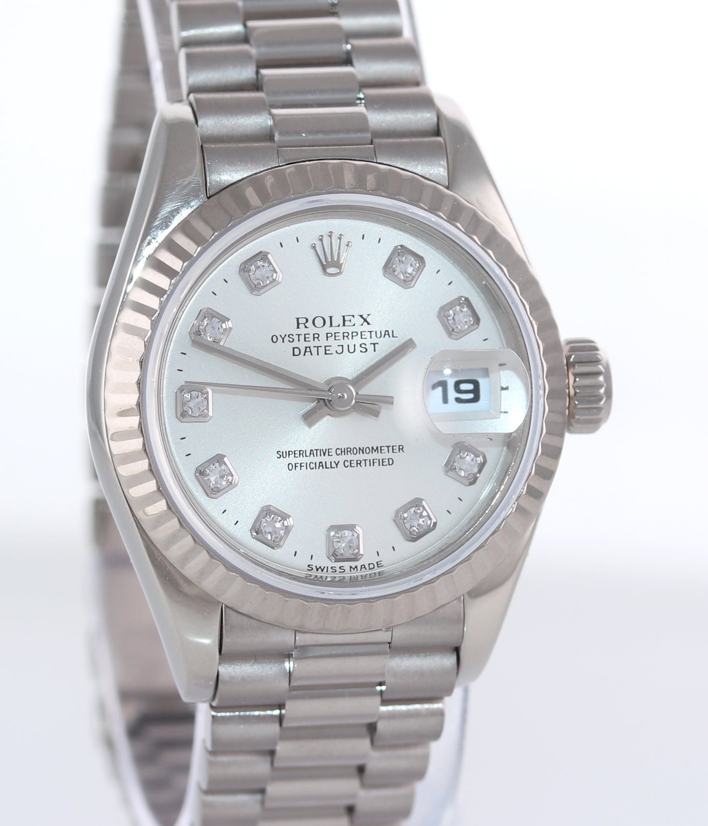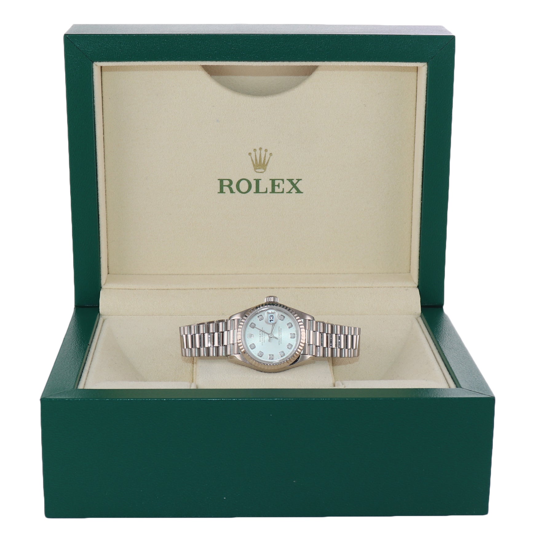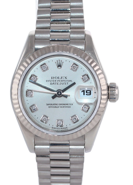 Ladies Rolex DateJust President 26mm 69179 18K White Gold Diamond Dial