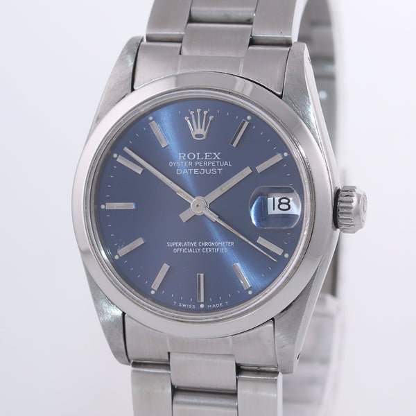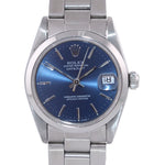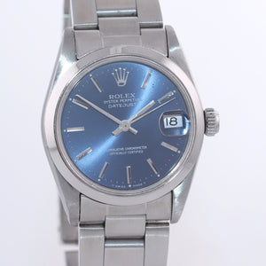 MINT Ladies Rolex DateJust Mid-Size 31mm 68240 Steel Blue Stick Date Oyster Watch