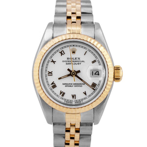 MINT PAPERS Rolex DateJust 26mm White Roman Two-Tone 18K Gold Jubilee 69173 BOX