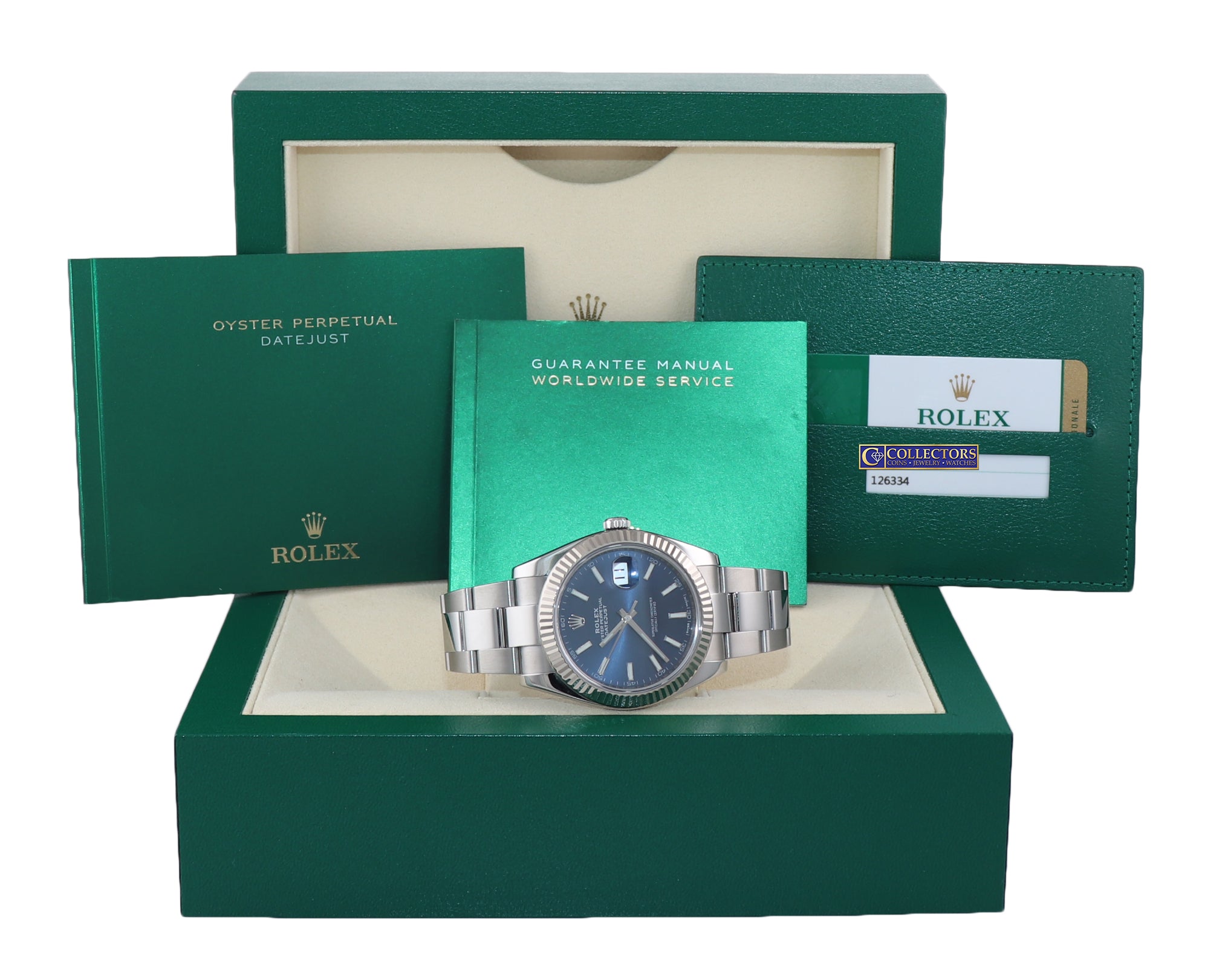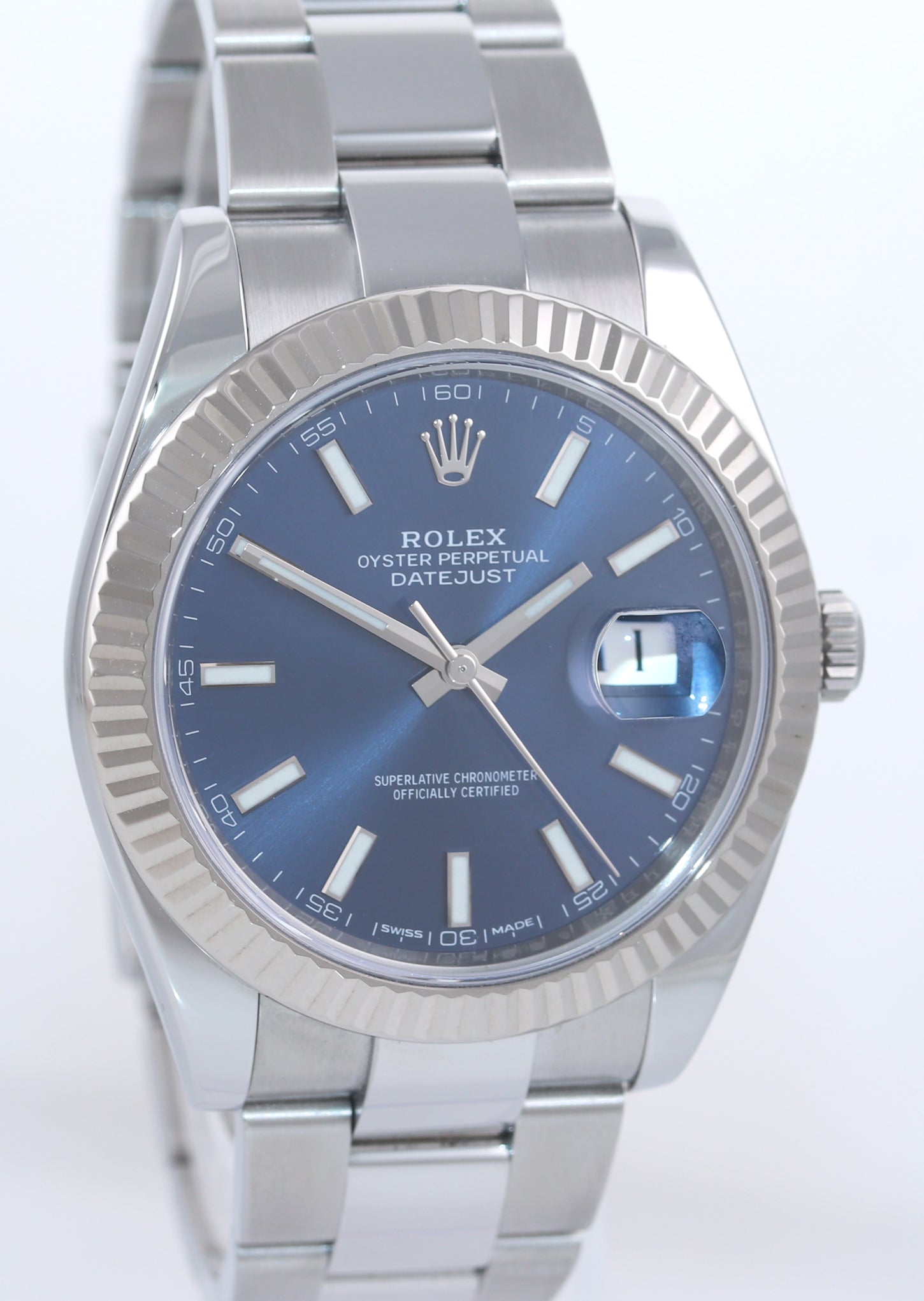 MINT 2018 Rolex DateJust 41 Blue Stick Lume Dial 126334 Steel Oyster Band 41mm Watch