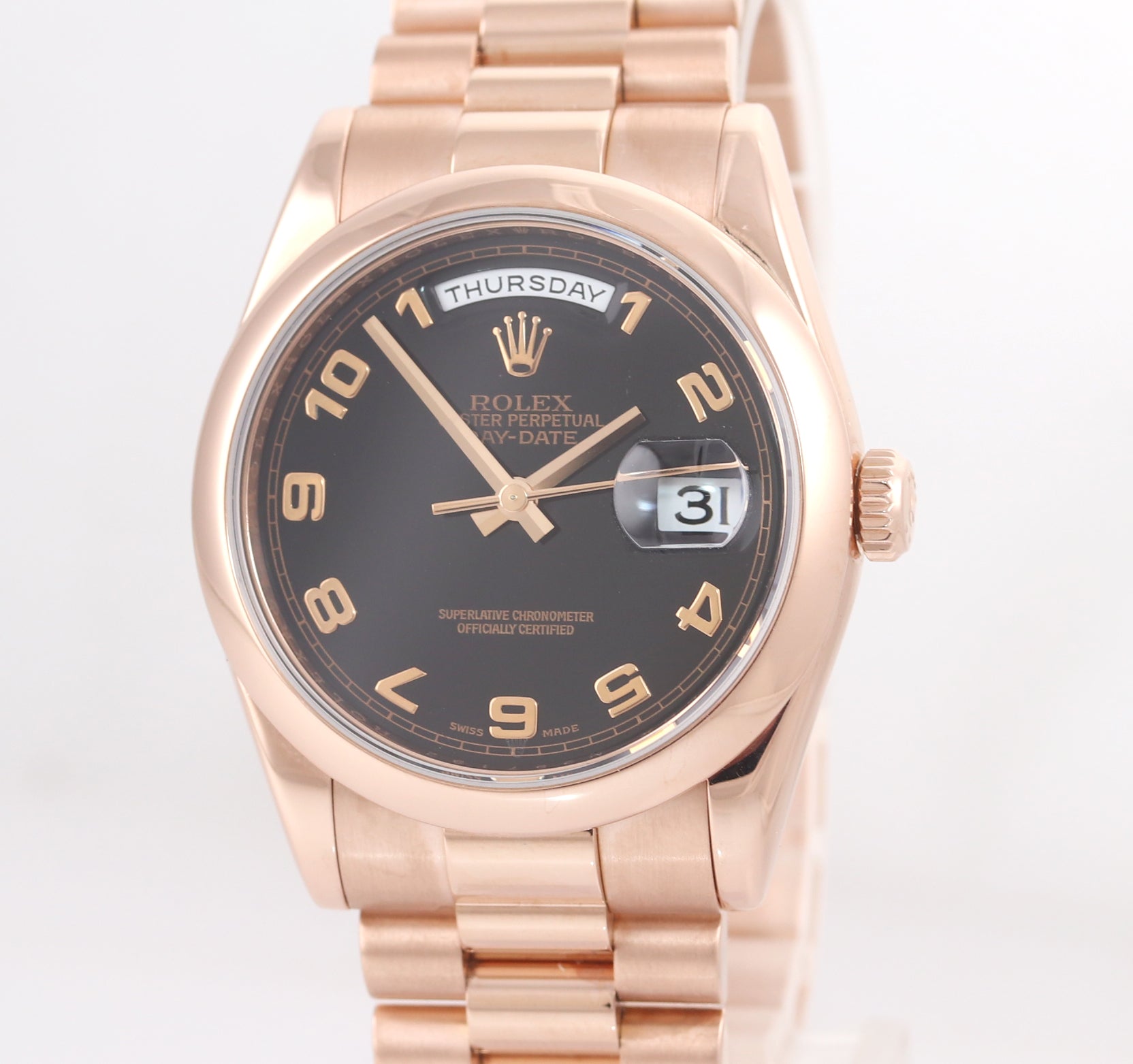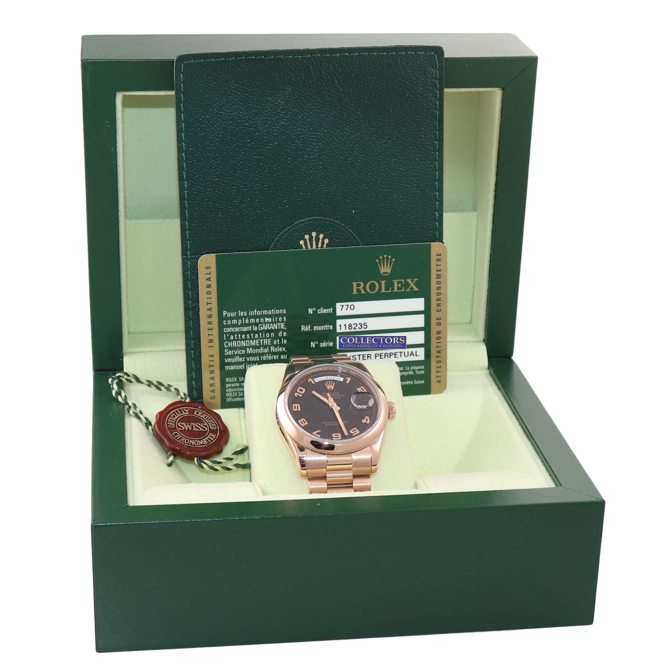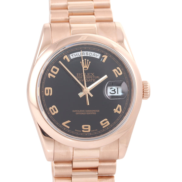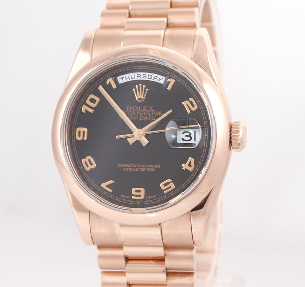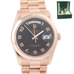 2008 PAPERS NEW BUCKLE Rolex Rose Gold President 36mm 118235 18K Black Arabic