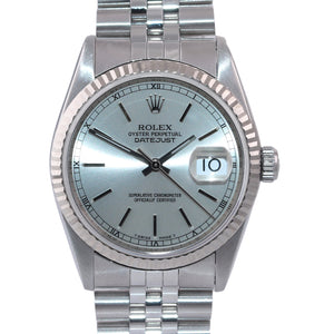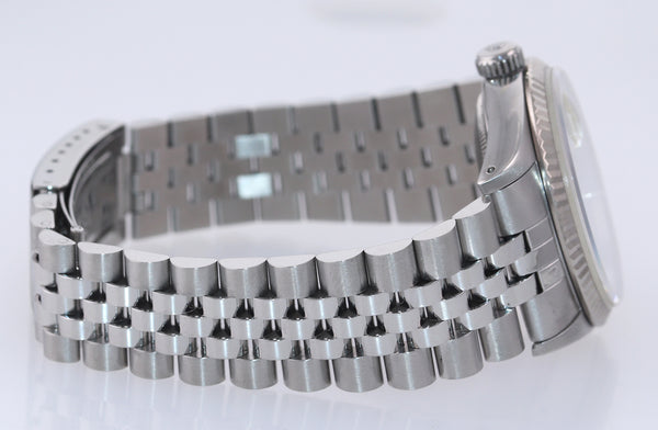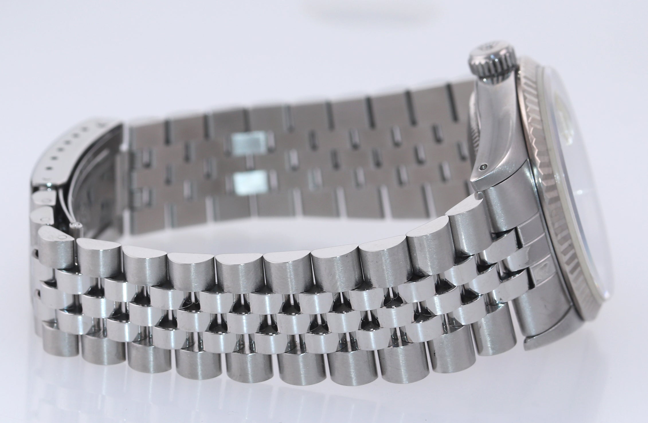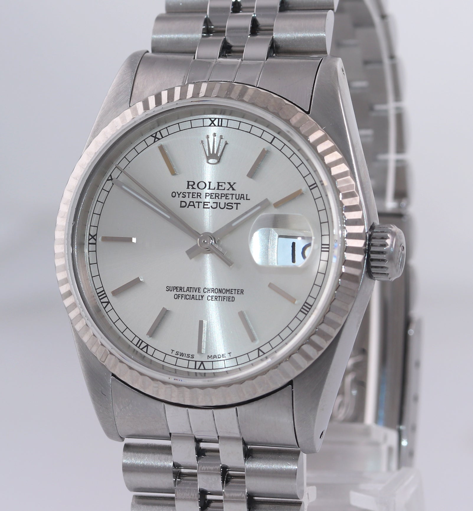 PAPERS Rolex DateJust 36mm 16234 Steel Silver Stick Jubilee 18k Fluted Bezel Watch