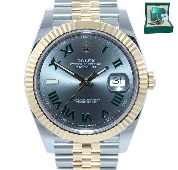 PAPERS NEW 2020 Rolex DateJust 41 126333 Two Tone Gold Wimbledon Grey Watch