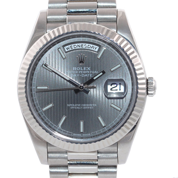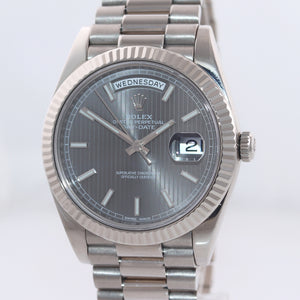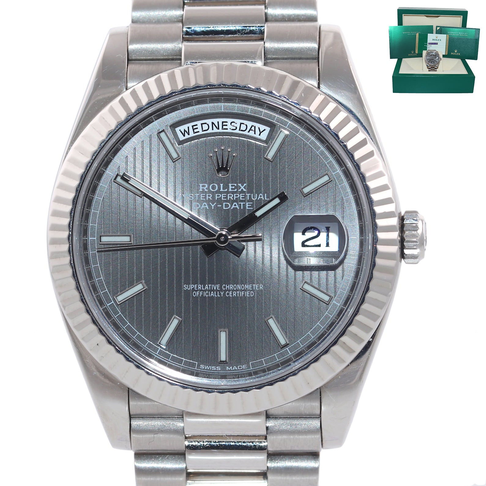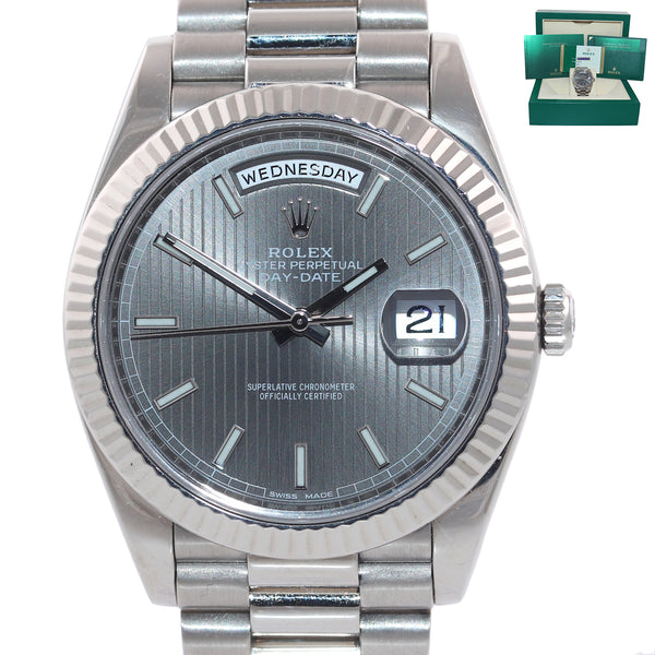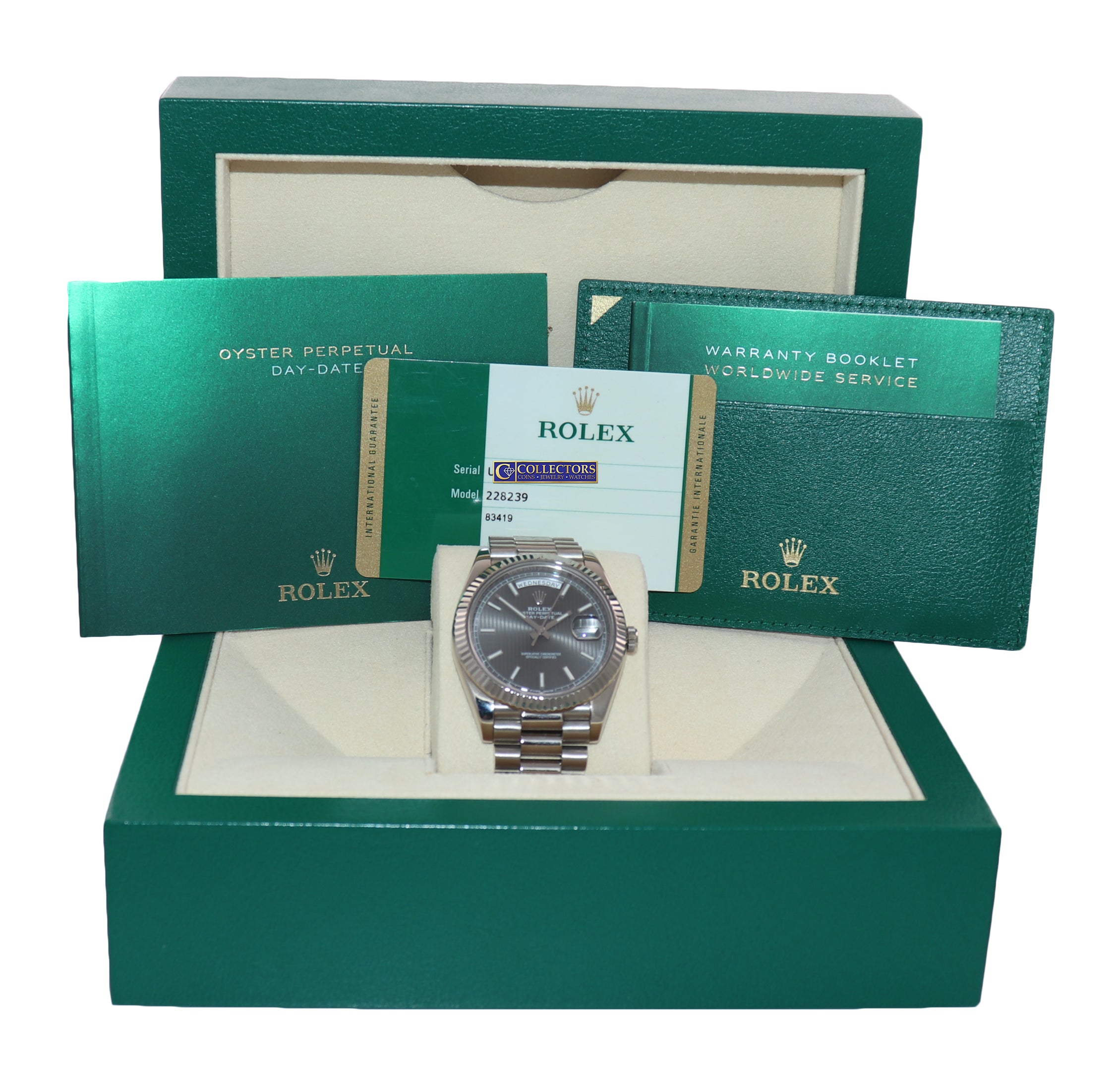 2016 PAPERS Rolex Day Date 40 White Gold President Rhodium Tapestry 228239 Watch Box