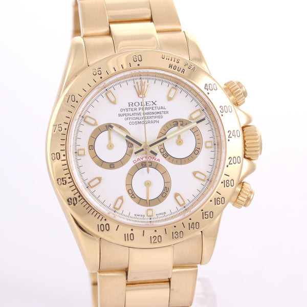 PAPERS Rolex Daytona Cosmograph 116528 White Dial 18K Yellow Gold 40mm Watch