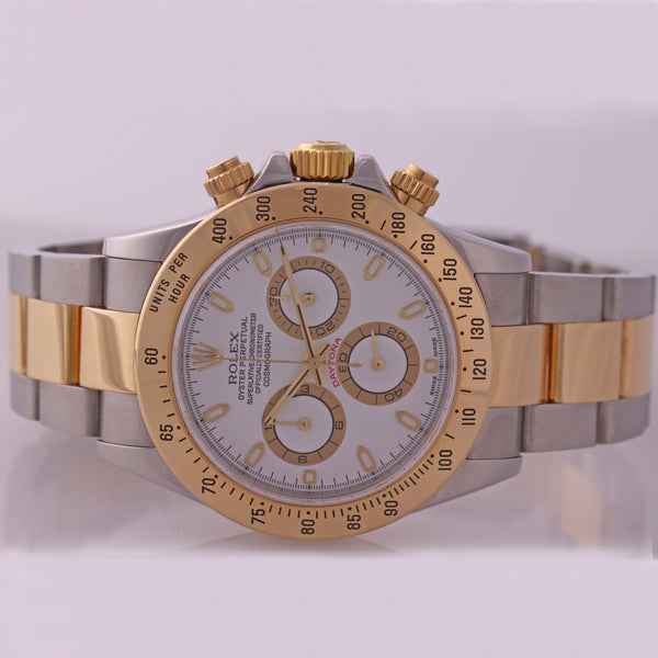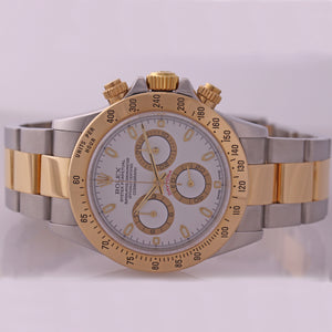 MINT Rolex Daytona Cosmograph 116523 White Two Tone 18k Yellow Gold Steel Watch Collectors