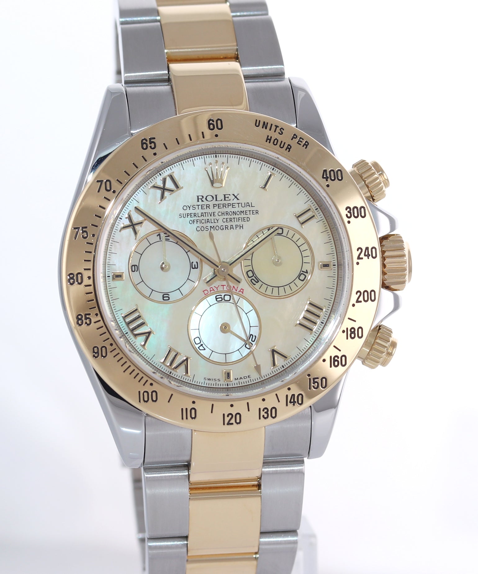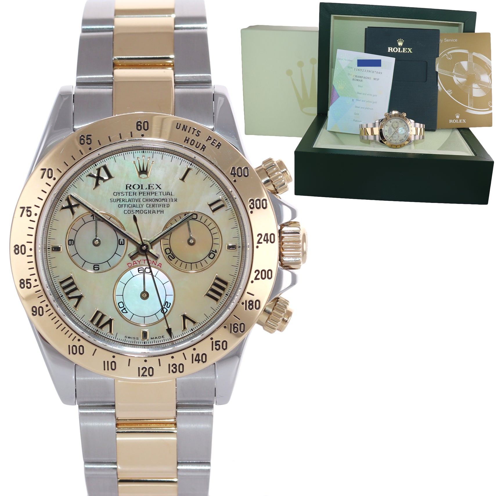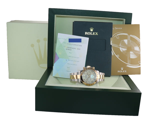 PAPERS Rolex Daytona CHAMPAGNE MOP ROman Two Tone 116523 Yellow Gold Watch