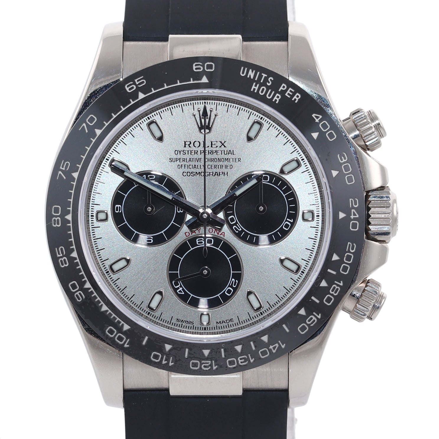 | Bezel | Original Rolex Black Ceramic Bezel with an engraved tachymetric scale |