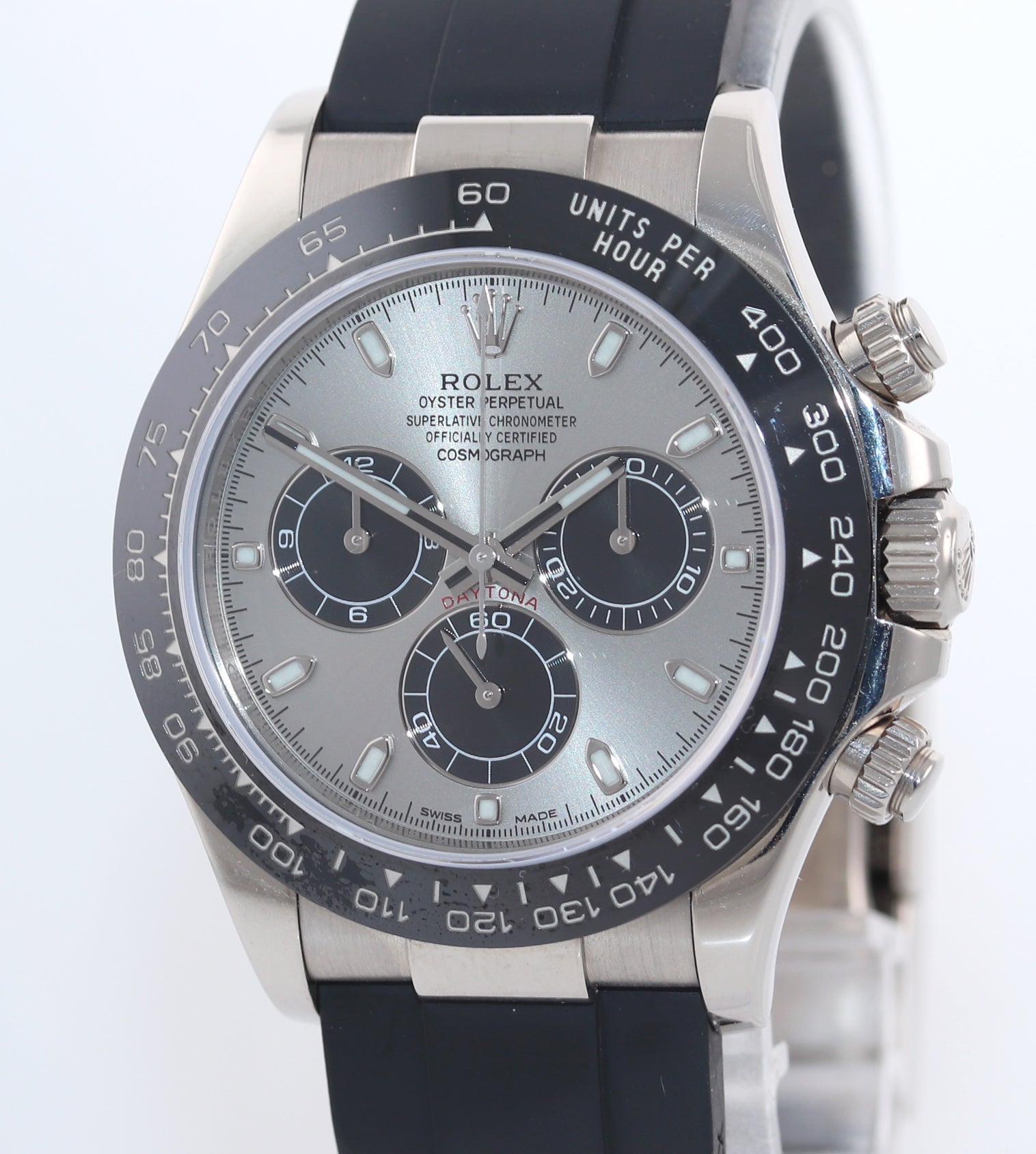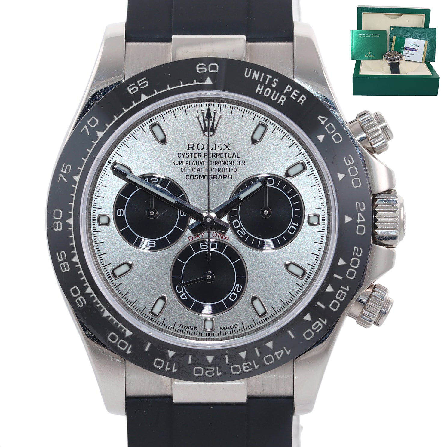 PAPERS Rolex Daytona Oysterflex 116519LN White Gold Ceramic Silver Panda Watch