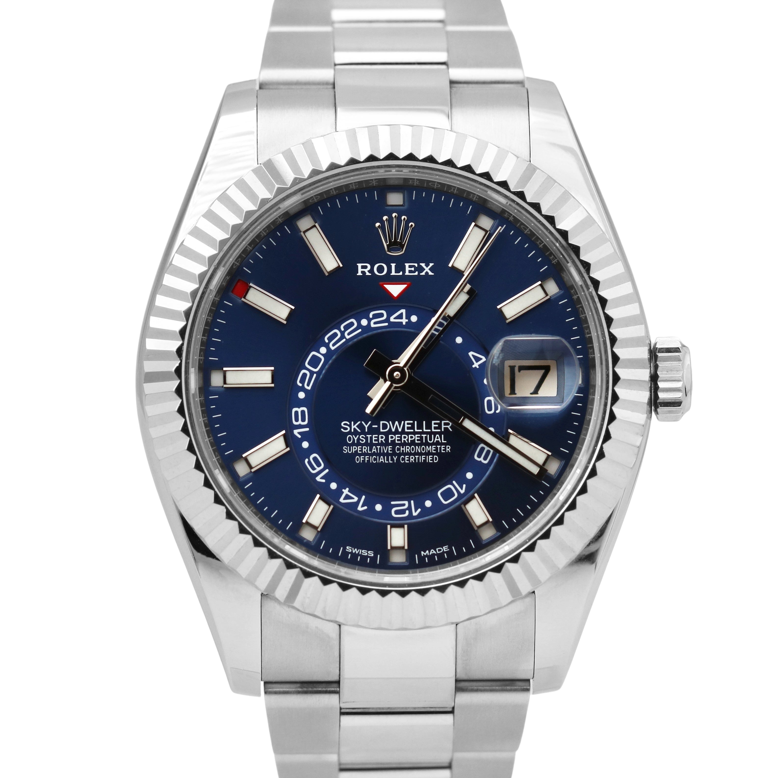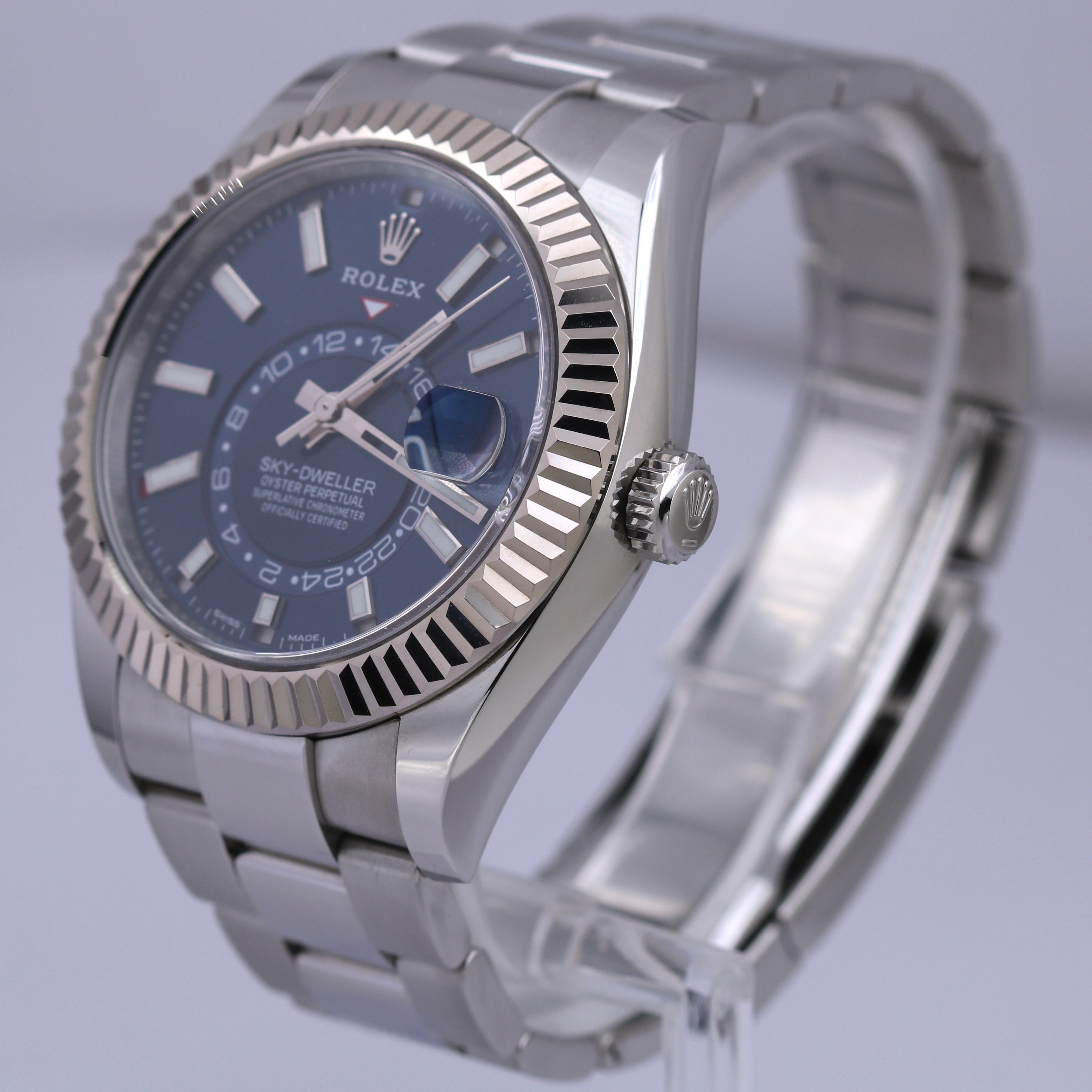 PAPERS Rolex Sky-Dweller 18K White Gold Steel BLUE 42mm Oyster Watch 326934 B+P