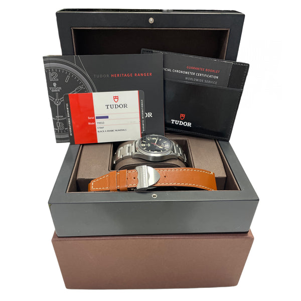 PAPERS Tudor Heritage Ranger 41mm Black Stainless Steel Leather Watch 79910 B+P