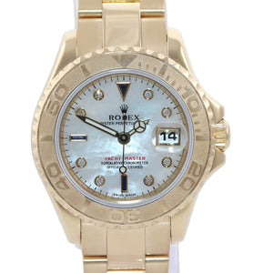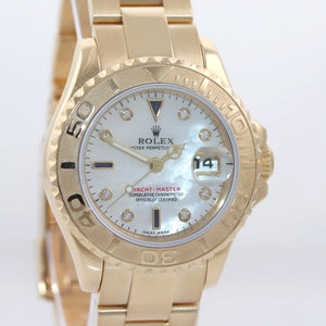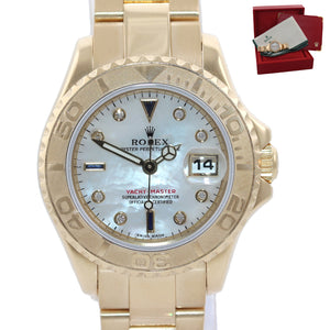 Yellow GOLD Ladies Rolex Yacht-Master 169628 White MOP Diamond Watch Box