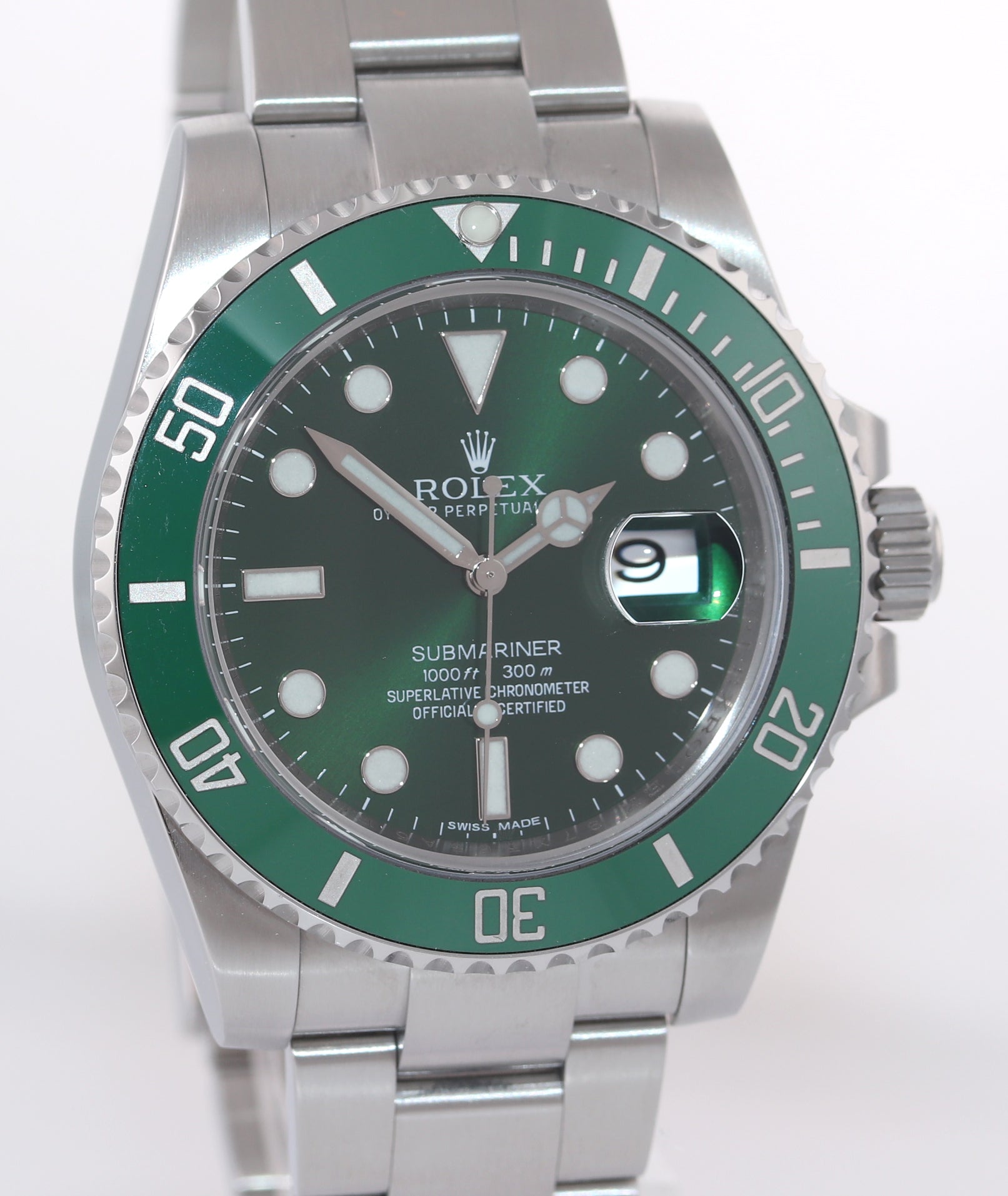 RANDOM SERIAL PAPERS Rolex Submariner Hulk Green Ceramic 116610LV Steel Watch