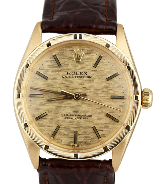| Bezel | Original Rolex 14K Yellow Gold Engine Turned Bezel |