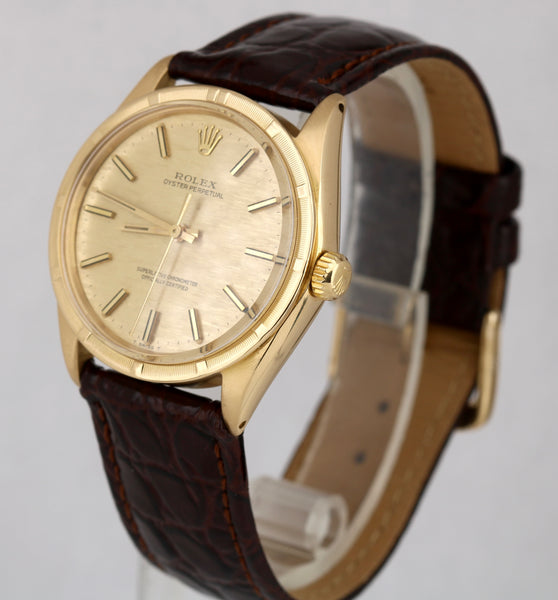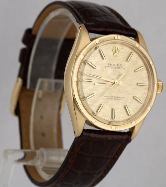 RARE 1972 Rolex Oyster Perpetual Mosaic Brick 34mm 14K Yellow Gold Watch 1007