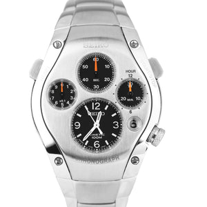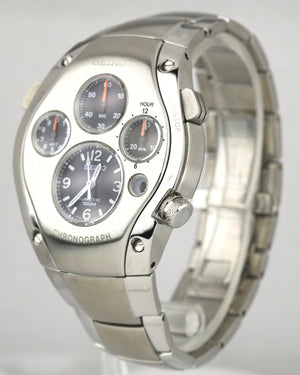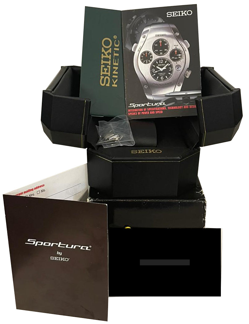 RARE Seiko Kinetic Chronograph Sportura R2 SLQ007J Black Dials 42mm Watch