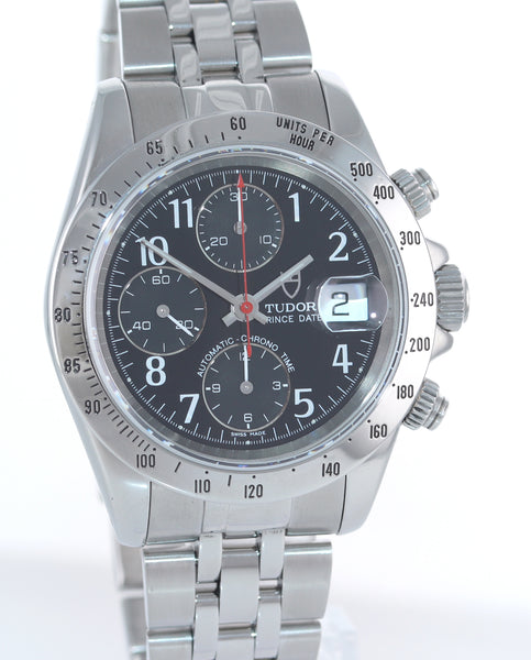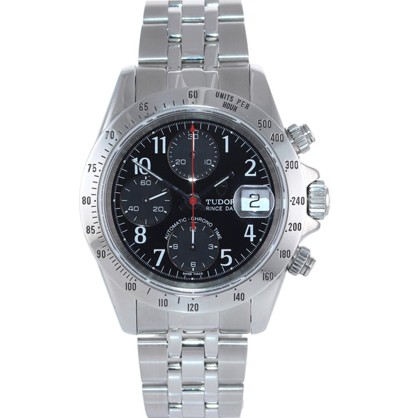 | Dial | Original Tudor Prince Date Black Arabic Chronograph Dial with a date window at 3 o'clock |