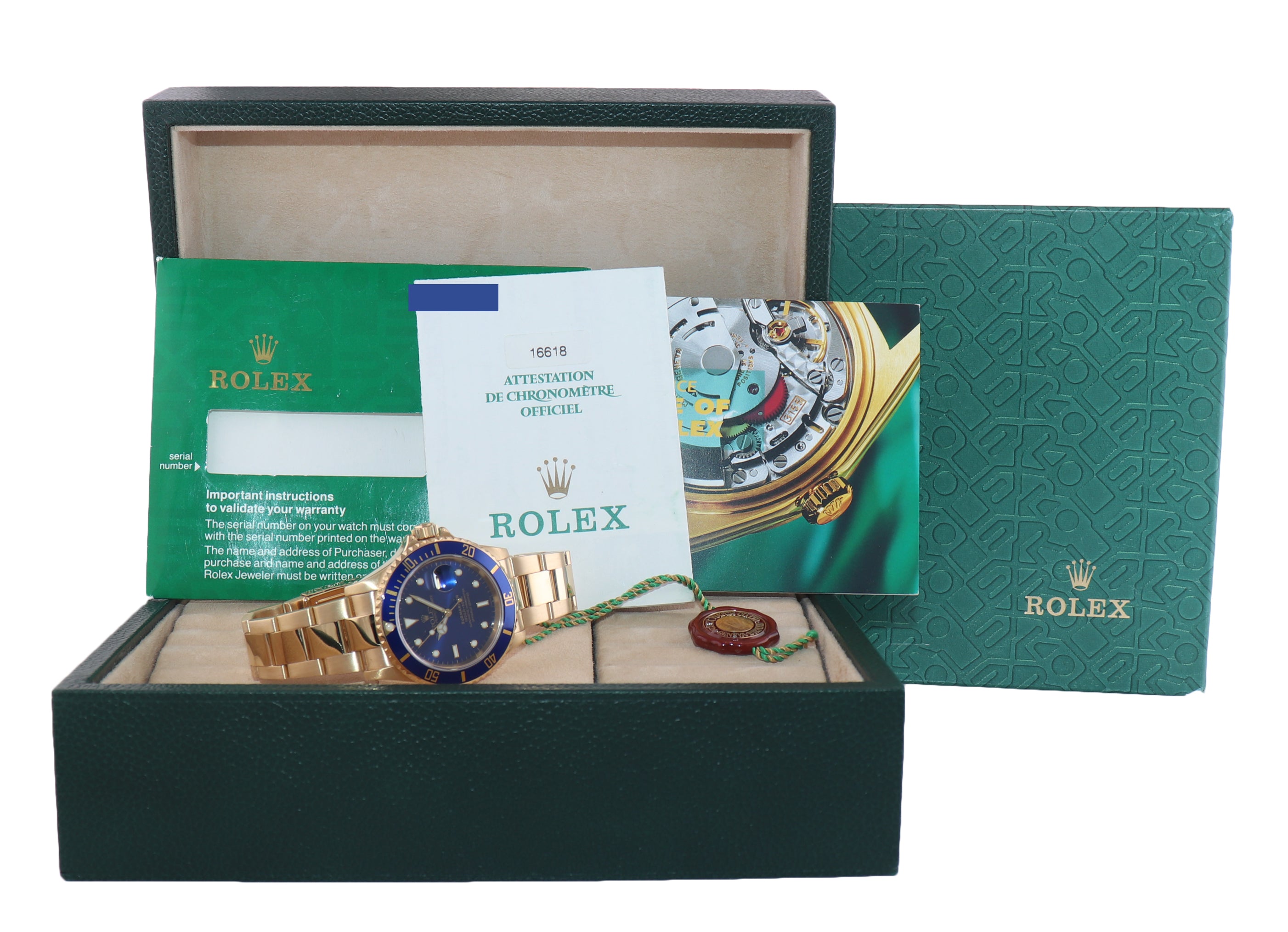 | Bezel | Rolex Unidirectional Rotatable 60-Minute Graduated Blue Enamel 18K Yellow Gold Bezel |