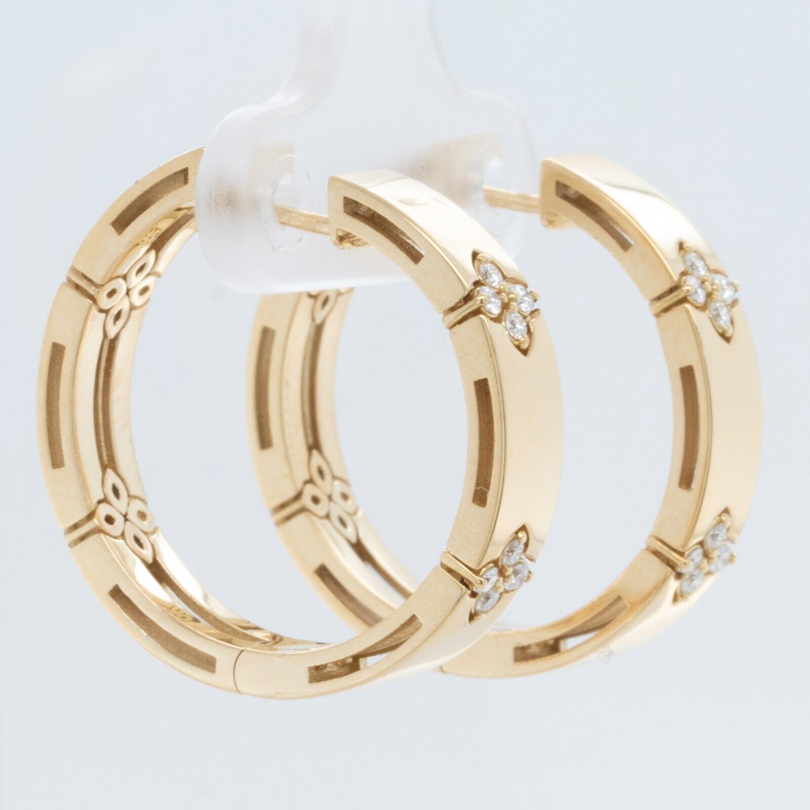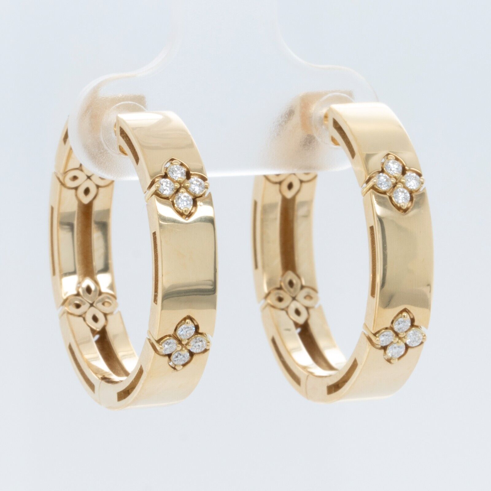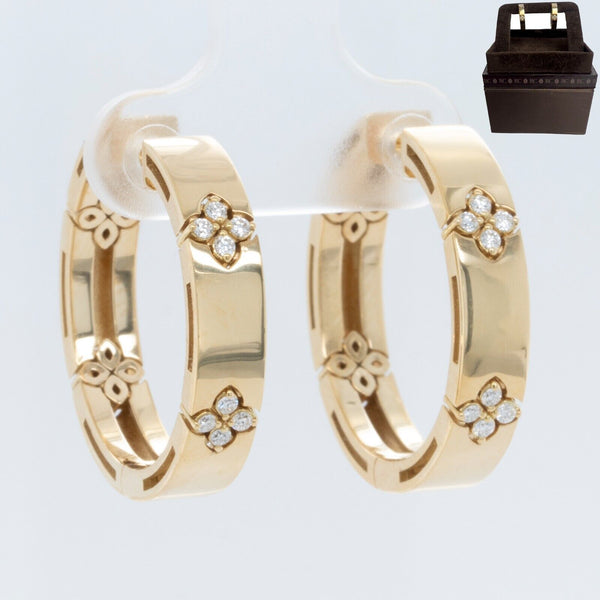 Roberto Coin 18k Yellow Gold Diamond Love In Verona Flower Hoop Earrings 0.12ctw