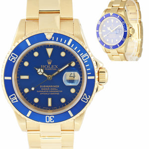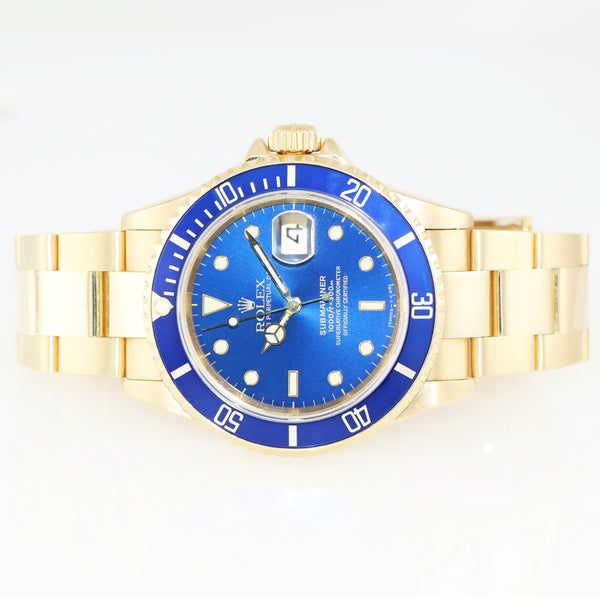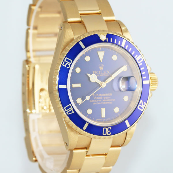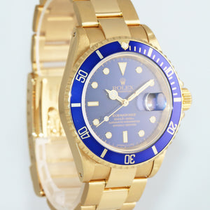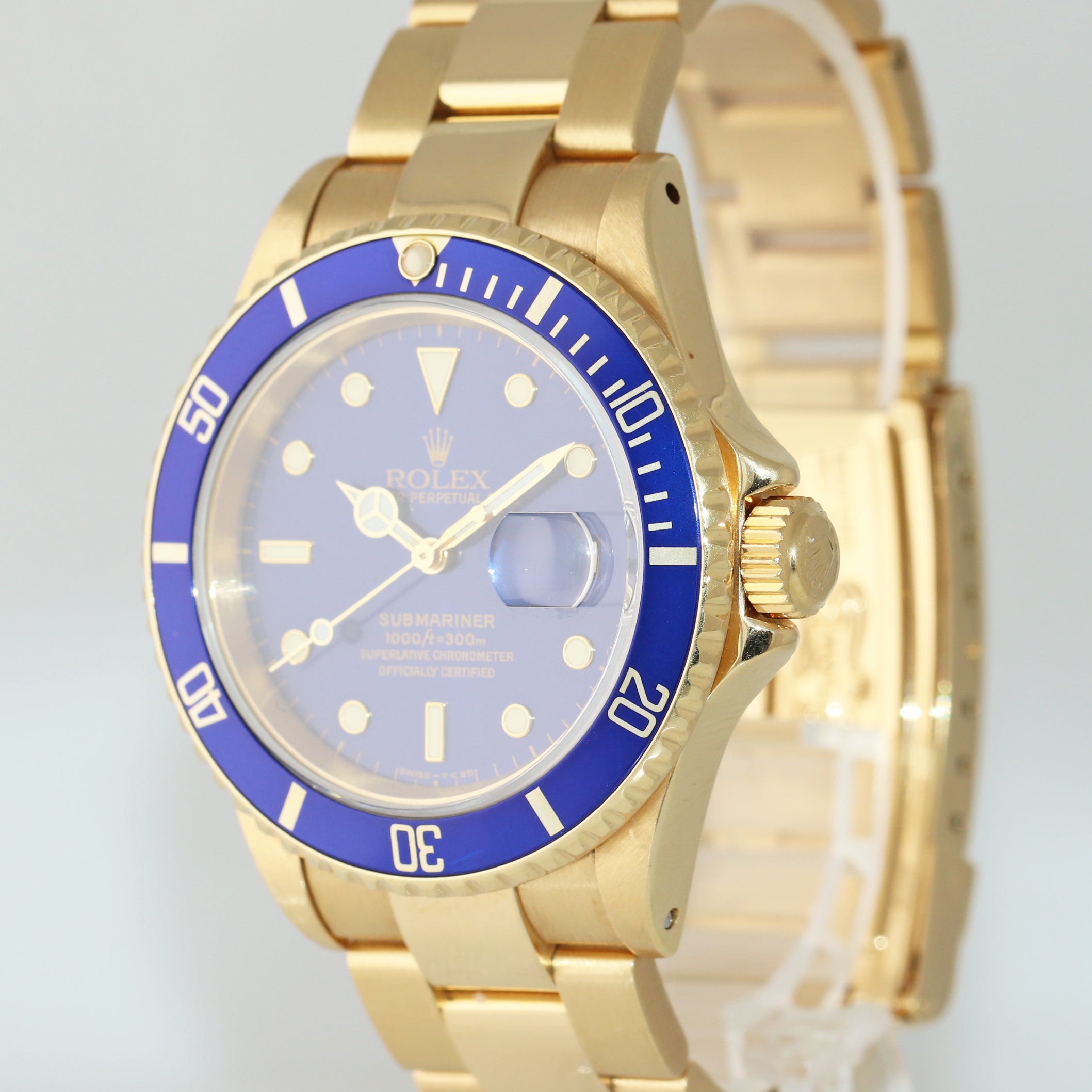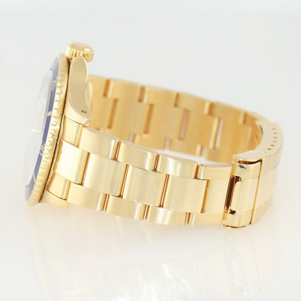Rolex Submariner 16618 18k Yellow Gold Blue Sunburst Dial Watch