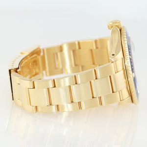 | Bezel | Original Rolex Unidirectional Rotatable 60-Minute Graduated Blue Enamel 18K Yellow Gold Bezel |