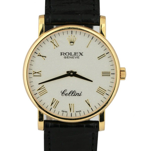 2006 Rolex Cellini Ivory Jubilee Roman Numeral 18K Yellow Gold 32mm Watch 5115