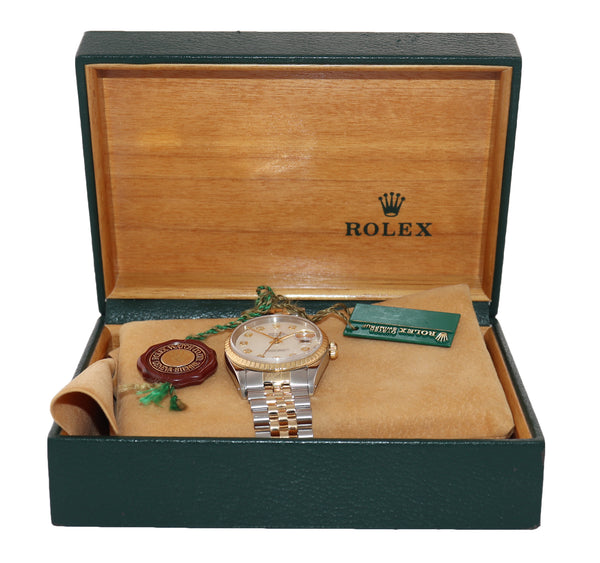 | Band | Original Rolex Two Tone 18k Yellow Gold Stainless Steel Jubilee Bracelet. Has New Style Finish. |