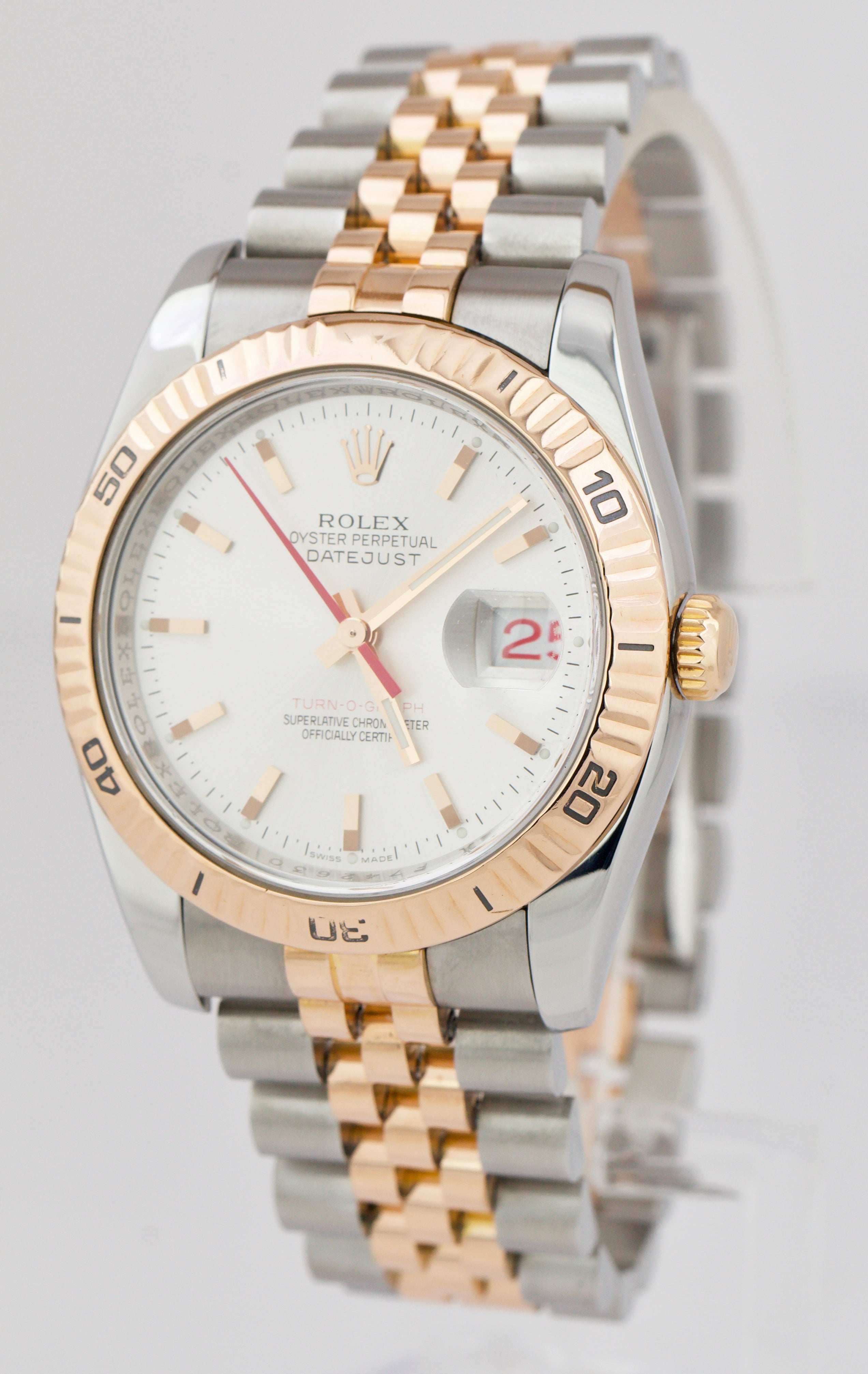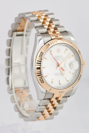 Rolex DateJust 116263 SILVER Turn-O-Graph JUBILEE 36mm Two-Tone Rose Gold Watch
