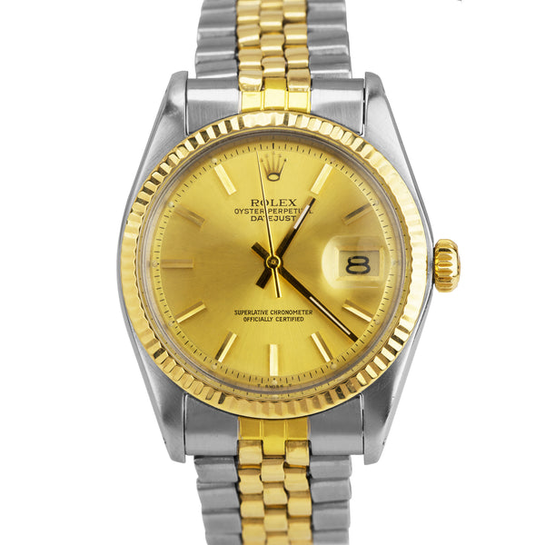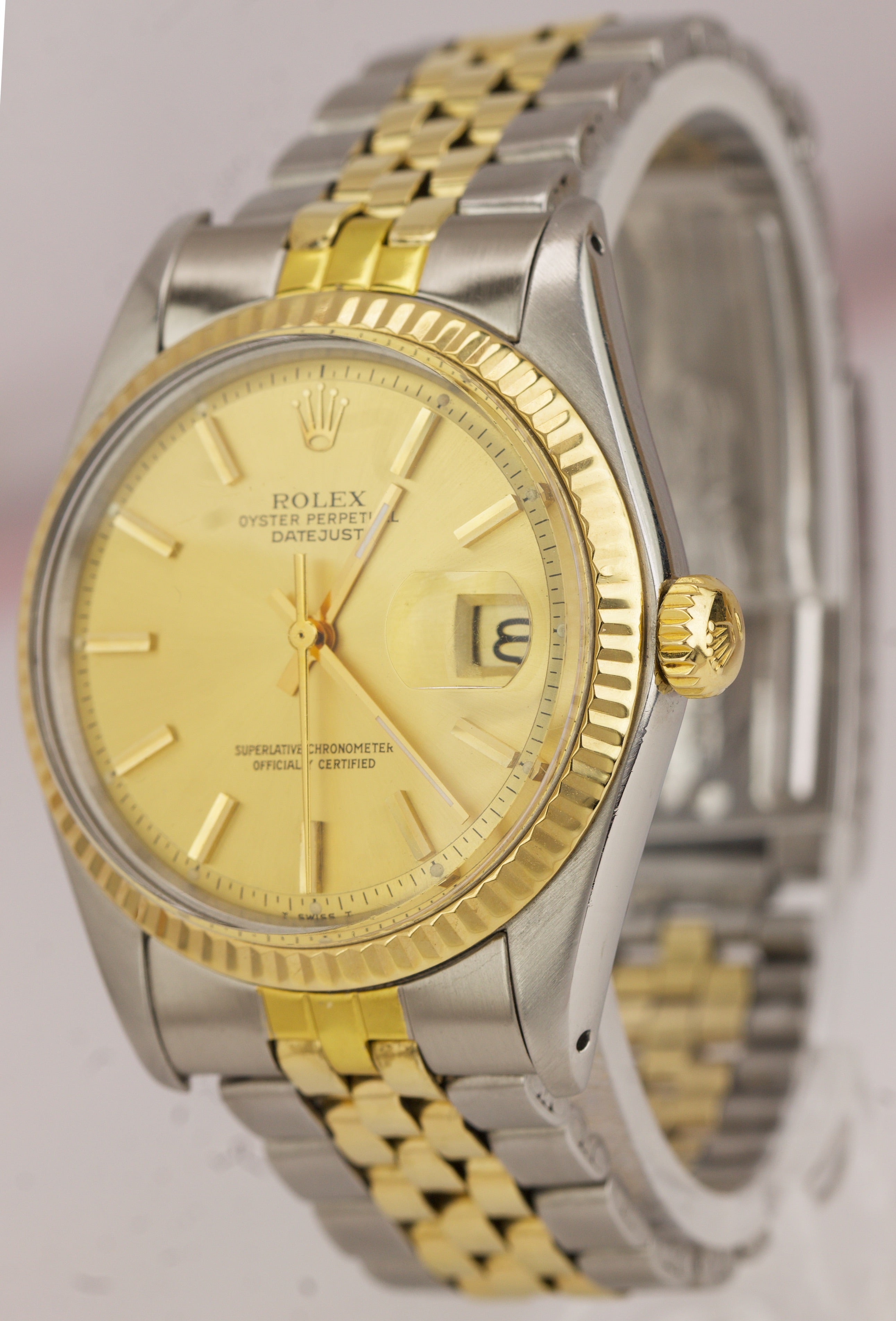 Vintage Rolex DateJust 36mm 1601 Pie Pan Two-Tone Gold Steel Jubilee Watch 16013