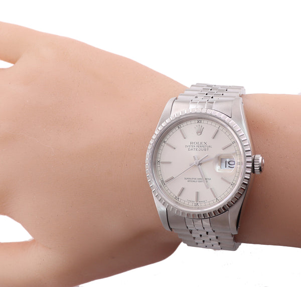 | Dial | Rolex Silver Stick Dial with the date at the 3 o'clock |