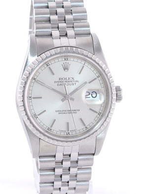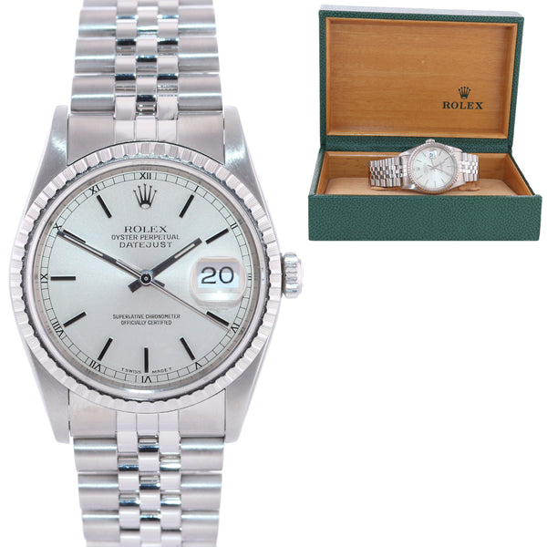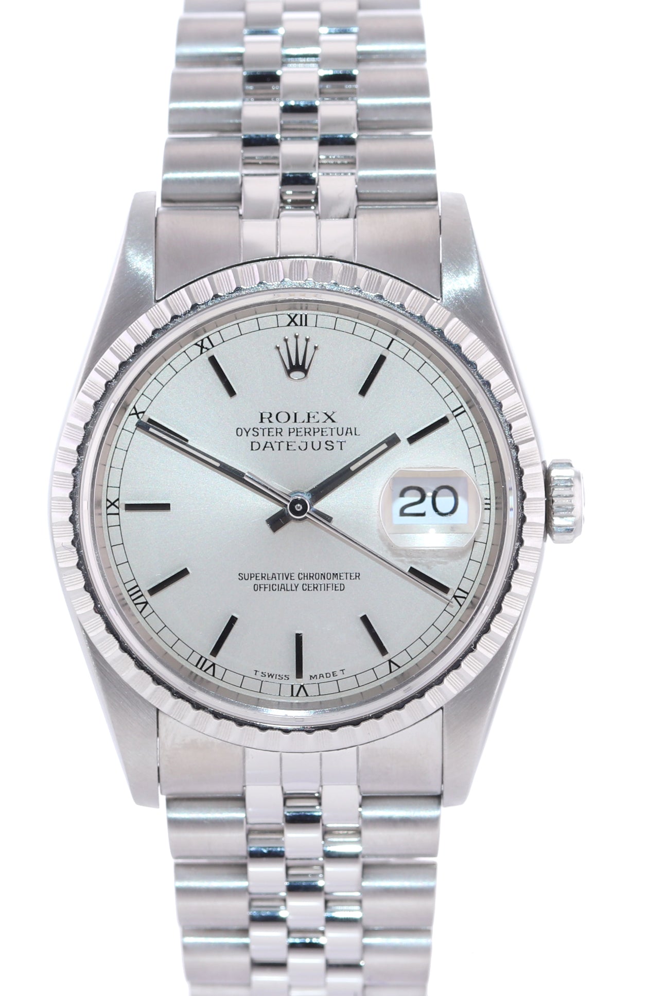 PAPERS Rolex DateJust 36mm 16220 Blue Stick Steel Jubilee Date Watch