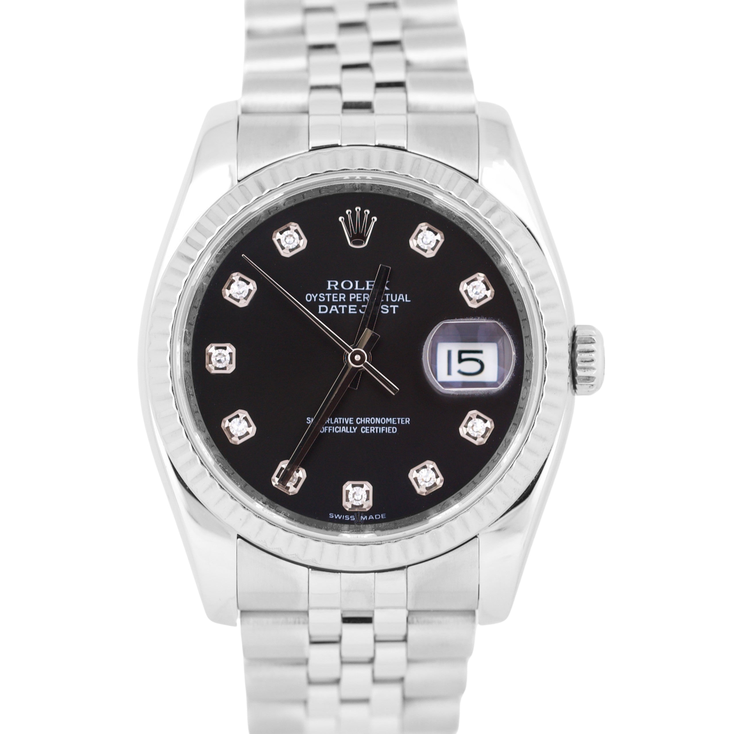 Rolex DateJust 36mm BLACK DIAMOND Steel 18K White Gold Fluted JUBILEE 116234