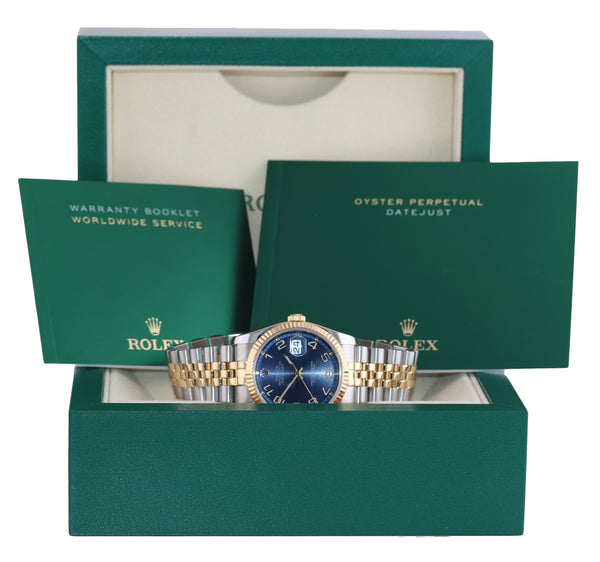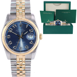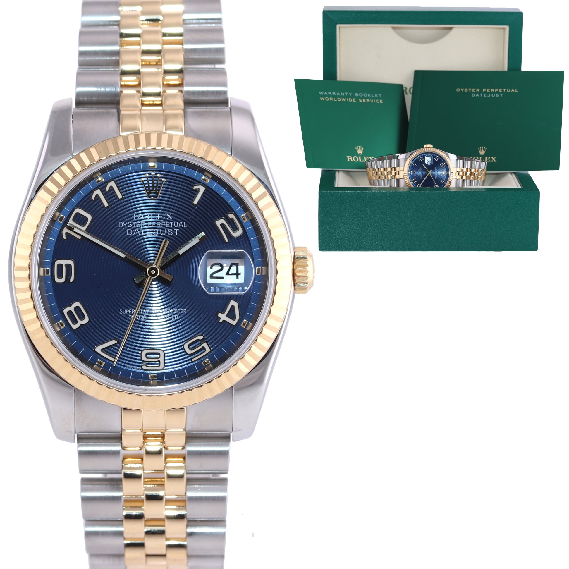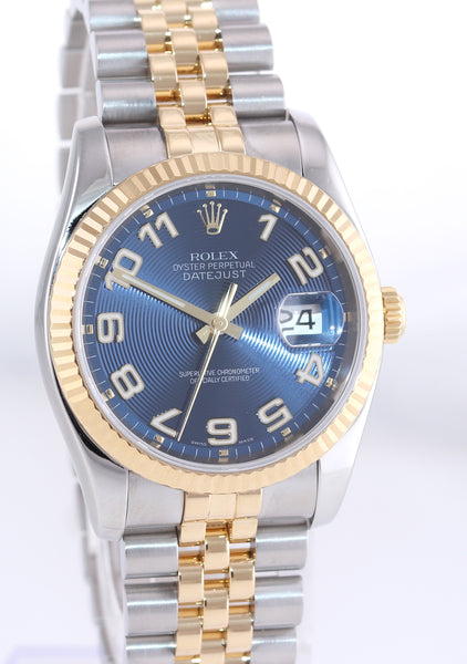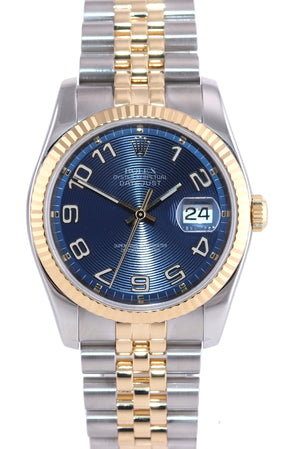 | Dial | Rolex Blue Concentric Arabic Dial with the Red Black Roulette date at the 3 o'clock |
