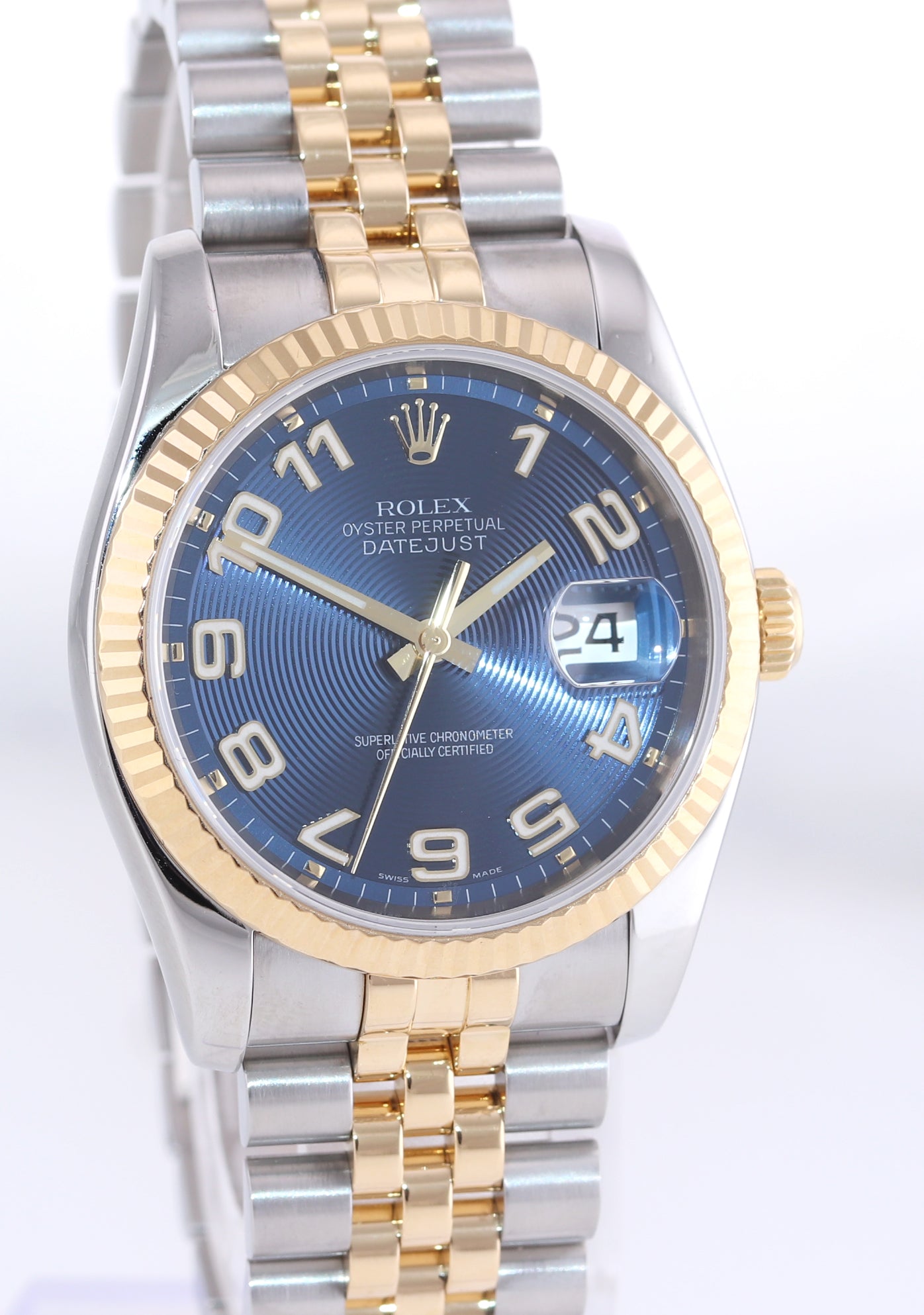 | Bezel | Rolex Fixed Solid 18K Yellow Gold Fluted Bezel |